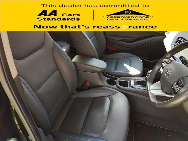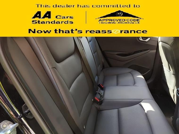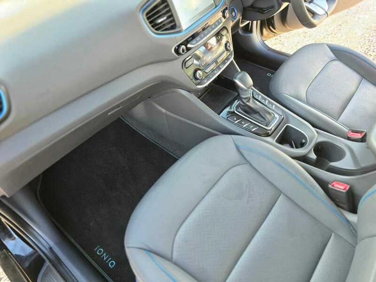 This car comes with 5 seats, Black, 1 owner, 100 Percent MapCare Programme - 10 Years of Map Updates, 12V Power Outlet, 15in Alloy Wheels with Aerodynamic Wheel Trims, ABS - Anti-Lock Brake System, Air Conditioning - Driver-Only Mode, Air Conditioning - Dual Zone Climate Control, Airbags - Front - Front Side - Curtain and Drivers Knee, Alloy Pedals, Arm Rest - Front with Storage, Automatic De-Fog System for Front Windscreen, Automatic Dimming Rear View Mirror, Automatic Headlights with Dusk Sensor, Automatic Windscreen Wipers with Rain Sensor, Autonomous Emergency Brake, Blind Spot Detection System - BSD, Bluetooth Connectivity, Bumper Accents, Centre Console - Tablet Storage, Cruise Control - Smart Adaptive Speed Control, Cup Holders - Front, Daytime Running Lights - LED, Deadlocks, Door Mirror Puddle Lights, Door Mirrors - Body Coloured, Door Mirrors - Power Folding, Door Scuff - Chrome with IONIQ Logo, Drive Mode Select - Gear Lever, Drivers Seat - Ventilated, Drivers Seat Electric Adjustments, Drivers Seat with Memory Function, Drivers Supervision Instrument Cluster with TFT Display - 7in, Electric Power Steering with Variable Drive Modes, Electric Windows - Front and Rear, Electric Windows - Front with Anti-Trap and One Touch Controls, Electronic Stability Control - ESC, Exterior Door Handles - Body Coloured with Chrome Insert, Fog Lights - LED Rear, Front Head Restraints - Vertical and Horizontal Adjustment, Front Passenger Airbag De-Activation Switch, Front Passengers Seat - Heated, Front Passengers Seat - Ventilated, Front Seat Back Pockets - Drivers Seat, Front Seat Back Pockets - Passengers Seat, HAC - Hill-Start Assist Control, Head Restraints - Rear with Vertical Adjustment, Headlights - Bi-Xenon, Heated Rear Windscreen, Heated Steering Wheel, Indicator Lights - Door Mirror - LED, Interior Colour-Coded Seat and Trim Accents, Interior Door Handles - Chrome Effect, Interior Light - Centre, Interior Light - Luggage Compartment, Interior Light - Map Reading Lights, Lane Departure Warning System with Lane Keeping Assist, Leather Wrapped Steering Wheel, Luggage Net, Paddle Shift Gear Change, Parking Brake - Foot, Parking Sensors - Front and Rear, Parking System - Rear Camera and Guidance System, Passenger Seat Height Adjustment - Manual, Phone Connection - Android Auto, Phone Connection - Apple CarPlay, Positioning Lights LED, Radiator Grille - Active Air Flap, Radiator Grille - Gloss Black with Chrome Inserts, Radio - RDS and Digital Radio - DAB, Rear Air Vents in Centre Console, Rear Bumper - Two-Tone, Rear Cross Traffic Alert - RCTA, Rear Lights - LED, Rear Seats Outer - Heated, Rear Spoiler with Integral LED Brake Light, Rear View Parking Camera with Parking Guidance System, Seats - Drivers Electric Lumbar Support, Seats - Heated Drivers, Side Body Moulding, Smart Key - Keyless Entry with Engine Start-Stop Button, Solar Glass with Windscreen Shade Band, Spare Wheel - Emergency Space Saver - Steel, Speakers - Upgraded Infinity Sound System - 1 Centre - 2 Tweeters - 2 Front - 2 Rear - 1 Subwoofer and 1 Ext. Amp, Split Folding Rear Seats - 60-40, Steering Wheel with Audio - Phone and Cruise Controls, Sun Visors with Driver and Passenger Illuminated Vanity Mirrors, Sunglasses Holder, Touchscreen Satellite Navigation - 8in, Tyre Pressure Monitoring System with Individual Tyre Display, USB - Drivers Arm Rest - Charging Only, USB and AUX Connections - Front, Window Surround - Chrome Finish, Windscreen Washer Fluid Sensor and Warning Indicator, Wireless Phone Charging Pad,