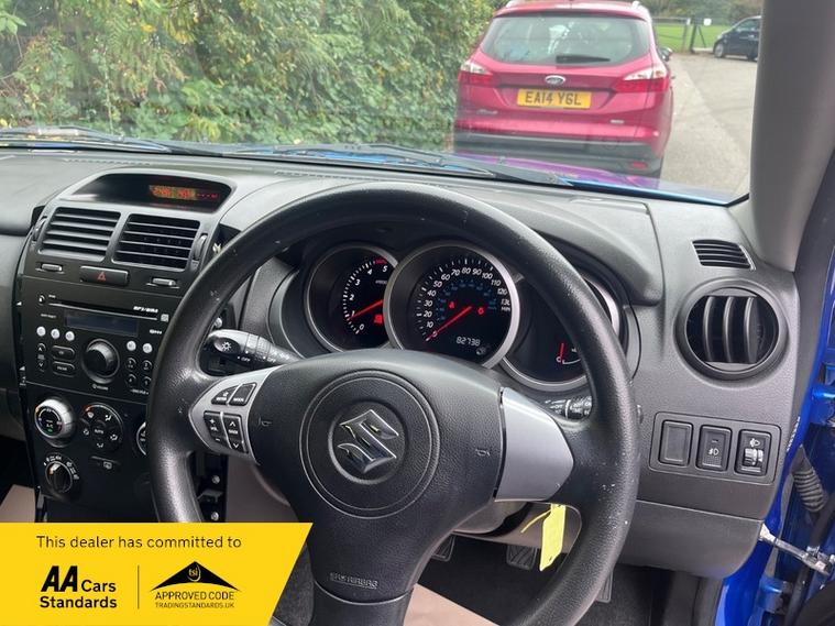 superb 4x4 grand vitara metalic blue cross country tyres superb, Power assisted brakes, Roof aerial, Exterior temperature display, Tool kit, Comfort suspension, Exhaust gas recirculation, Exhaust particle filter, Off-road suspension, Power Assisted Steering, Rev counter, Selectable all wheel drive, Auxiliary input socket, Radio/CD, OEM sound system, USB input, Body coloured bumpers, Initial anti-corrosion treatment, Tailgate, Under body protection, Halogen headlights, Manual headlight height adjust, Air conditioning, Cabin air filter, Ashtray, Coat hook, Front cigarette lighter, Front head restraints, Rear headrests, Sports steering wheel, Steering wheel manually adjustable, Steering wheel rake adjustment, Steering wheel reach adjustment, Timed interior light, Leather gear selector trim, Leather handbrake trim, Boot mat, Rear seat through loading, Roof rack system, Door mirrors electrically foldable, Electric adjustable driver's door mirror, Electric adjustable passenger door mirror, Electric door mirrors, Heated door mirrors, Metallic Paint, 3x3 point rear seat belts, Drivers airbag, Isofix child seat anchor points, Manual child proof locks, Passenger airbag, Seatbelt pretensioners - Front, Seatbelt reminder, Comfort driver's seat, Comfort front passenger seat, Folding rear seats, Immobiliser, Remote central locking, Cloth seat upholstery, 17'' Alloy wheels, Alloy wheels, Space saver spare wheel, Front electric windows, Rear electric windows, Rear window heating, Rear wiper, Tinted rear windows, UV reducing windows, 60 year established village garage includes 1 year AA membership 3 months warranty with option to extend to 3 years AA approved dealer , AA dealer promise, Independent service and pdi, min 6 months mot, All major credit/debit cards accepted, Part exchange always welcome, Test drive available, finance to suit your budget. Regulated by the FCA, Delivery 2 you, Buy with confidence