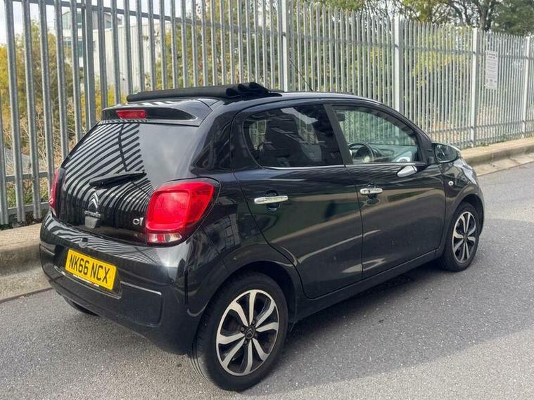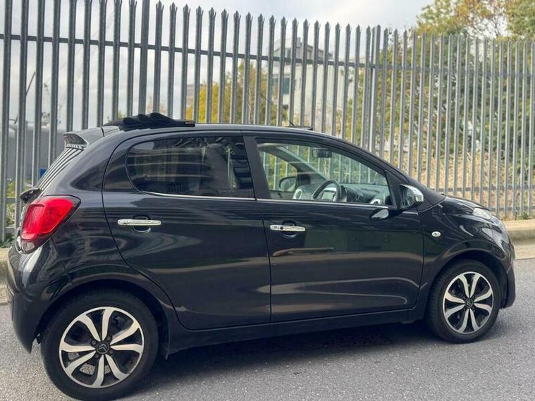 This 2016 Citroen C1 Flair is a fantastic example of a well maintained city car. It boasts a 1.2 litre petrol engine and meets Euro 6 emissions standards, making it an environmentally conscious choice. Inside, you'll find stylish black leather upholstery, complemented by automatic air conditioning and automatic headlights for effortless driving. The exterior is enhanced by 15 inch Planet Black alloy wheels, and the Flair trim also includes a retractable black fabric roof, perfect for enjoying sunny days.