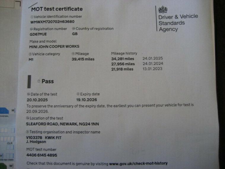 This 2018 MINI Hatch Cooper S Works 210 6 Speed with Works 210 Exterior Sports Pack is a standout example, having been cherished by just one Private owner from new and boasting exceptionally low mileage of only 39, 400 miles, Compliemented by 3 Services to 36, 660miles in June 2025 - Original Cost New was £26, 104 in January 2018 - New 12 Months MOT till 19th October 2026 - This particular model is powered by a responsive 2.0 litre petrol engine, meeting the Euro 6 emission standards. It comes equipped with the desirable 7KN CHILI Pack, which includes automatic LED headlights and climate control, further enhanced by a heated front windscreen and Seats for those colder mornings.GardX Exterior Body Treatment - Inside, you'll find comfortable Diamond Cloth Leather upholstery in Carbon Black, John Cooper Works 210 Enhanced Kit (£1695 Extra) - plush velour floor mats, and a height adjustable passenger seat, all contributing to a refined driving experience., , The performance of this MINI Hatch Cooper S John Cooper Works 210 is truly impressive, infact breathe takingly quick. This brisk acceleration, combined with its comprehensive feature set and excellent provenance, positions it as a superior choice compared to other vehicles in its class. It offers a compelling blend of sporty driving dynamics, premium comfort, and the distinctive MINI character, whether driving it quickly or sedately the choice would be yours ! - making it an appealing option for any discerning driver., 3 months warranty, Next MOT due 19/10/2026, Last serviced on 17/06/2025 at 36, 622 miles, Full service history, Excellent bodywork, Interior - Excellent Condition, Tyre condition Excellent, 4 seats, Metallic Thunder Grey with Sport Leather, 1 owner, Upgrades - John Cooper Works 210, John Cooper Works 210 Tuning Kit Certicate, 7KN CHILI Pack, Cruise Control with Brake Function, MINI Driving Modes, Visual Boost Radio, Darkened Rear Glass, Heated Front Windscreen, Roof and Mirror Caps - Black, Air Conditioning - Automatic Dual Zone, Colour Line - Carbon Black, Diamond Cloth-Leather - Carbon Black - Carbon Black, Floor Mats - Velour, Interior Light Pack, MINI Excitement Pack, Multifunction Controls for Steering Wheel, Passenger Seat Height Adjustable, Seat Heating for Driver and Front Passenger, Storage Compartment Pack, Front Fog Lights - LED, LED Headlights and Daytime Running Lights and Tail Lights, Rain Sensor and Automatic Headlight Activation, Carbon Dash, 2 Remote Keys and Full Handbook Pack, Standard Features - 12Volt Socket in Front Centre Console, 17in Alloy Wheels - Track Spoke in Black, 3 Point Seatbelts on all Seats, 3rd Brake Light - LED Along Top of Rear Window, Airbags for Driver and Front Passenger - 6 Airbags as Standard, Alarm and Immobiliser - Thatcham CAT 1, Anti-Lock Braking System - ABS, Automatic Door Window Lowering by Approx 6mm When Door Opens, Bluetooth Hands Free Function with USB Audio, Boot Release via Remote Control, Brake Pad Wear Indicator, Chrome Bezels around Rear Lights and Headlights, Chrome-Plated Fuel Filler Cap in Rear Right Side Panel - Linked to Central Locking, Condition Based Service, Crash Sensor, Cupholders - Two in Front and One in the Rear Centre Console, DAB Tuner, DTC - Dynamic Traction Control with EDLC - Electronic Differential Lock Control, Daytime Driving Lights, Decorative Rings Surrounding Dashboard Instruments in Chrome Plated, Door Handles - Chrome Plated, Dynamic Stability Control - DSC, Easy Entry Access to the Rear Seats and Memory Function for Driver's Seat Base, Engine Scoop in Body Colour, Exhaust Tailpipe - Visible Double Round Central with Chrome Finishers, Exterior Mirrors - Aspheric on Drivers Side - Electrically Adjustable, External Visible VIN, Foldable Rear Backrest 60-40, Follow Me Home Function, Front Fog Lights, Front Passenger ISOFIX and Airbag De-Activation Switch, Fuel Pump Automatic Cut-Off in Crash Situation, Gearshift Lever Knob - Leather, Headliner - Satellite Grey, Heated Mirrors and Windscreen Washer Jets, Heated Rear Window with Automatic Deactivation, Heated Window Heater, Intelligent Emergency Calling - E-Call, Interior Door Handles - Chrome Plated, Interior Lights - Integrated into Centre Front Headliner, Interior Mirror - Mechanical Anti-Dazzle, Interior Trim - Black Chequered, John Cooper Works Aerodynamic Kit, John Cooper Works Roof Spoiler, Lashing Eyes in Luggage Compartment, Locking System with Central Locking, Luggage Compartment - Light, MINI Central Display with LED Ring, MINI Mobility System, MINI Sports Pack, MINI TeleServices, MINIMALISM Fuel Saving Technology, Non Smoker Package, Oddments Trays at Rear - Right and Left, On-Board Computer, Performance Control, Personal Profile, Power Steering with Servotronic, Radiator Grille - Chrome Border with Honeycomb Structure in Batt Matt with S Logo, Radio with Four-Line Display, Rear Fog Light, Rear Window Wiper, Reversing Light, Security Locking Wheel Bolts, Side Scuttles Chrome-Plated with Red S Lettering with Integrated Direction Indicator White, Sills - Bumper Edges - Wheel Arch Cover in Black, Sport Leather Steering Wheel, Sport Seats for Driver and Front Passenger, Start-Stop Button with Keyless Start, Steering Wheel Column Adjustment Mechanically in Height and Length, Storage Options, Sun Visors with Integrated Vanity Mirrors on Drivers and Passengers Sides, TPWS - Tyre Pressure Warning System, Tailgate Handle - High Gloss Black, Tool Kit in Luggage Compartment, Twin Horns, White Direction Indicators Lights, - For Further Information or to book an appointment to view - please call Roger direct on 01158863792 - Most times available by prior appointment