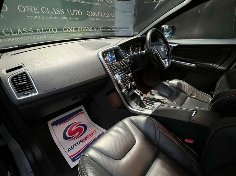 This 2016 Volvo XC60 D5 R-Design Lux Nav offers a compelling blend of performance and advanced technology. As a Euro 6 compliant model, it features a robust 2.4 litre diesel engine paired with a four wheel drive system, ensuring confident handling in various conditions. The R-Design Lux Nav trim level enhances the driving experience with a suite of notable features designed for comfort and safety. These include Driver Assist with Adaptive Cruise Control, Front and Rear Park Assist with a rear camera, and Lane Departure Warning complemented by Driver Alert Control, Active High Beam, and Road Sign Information Display. The electronic climate control ensures a pleasant cabin environment for all occupants.