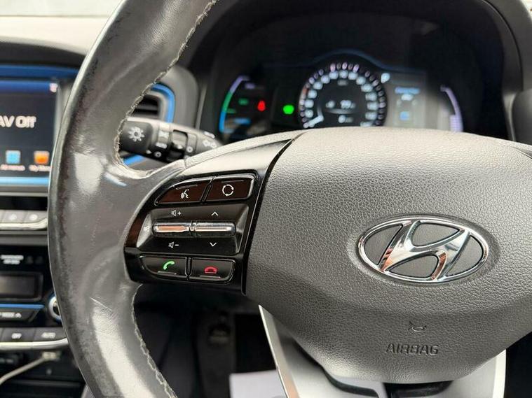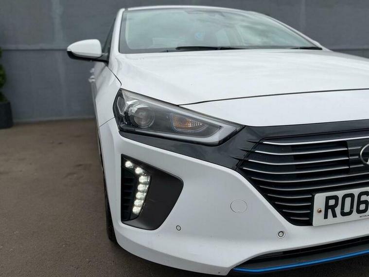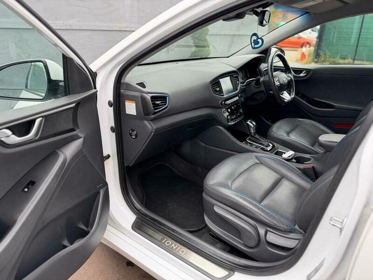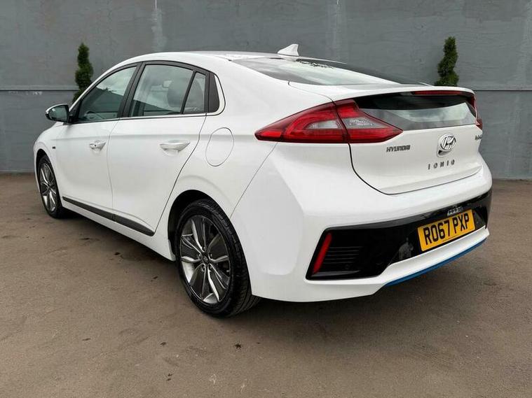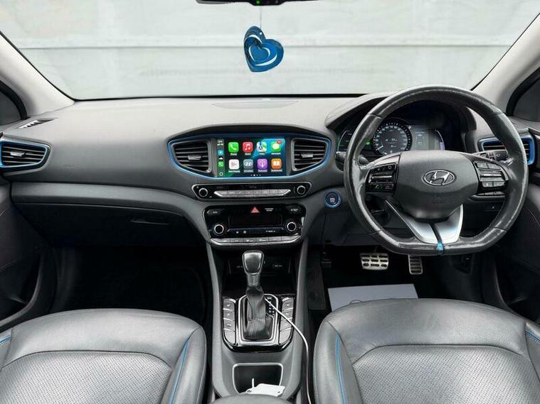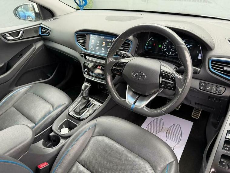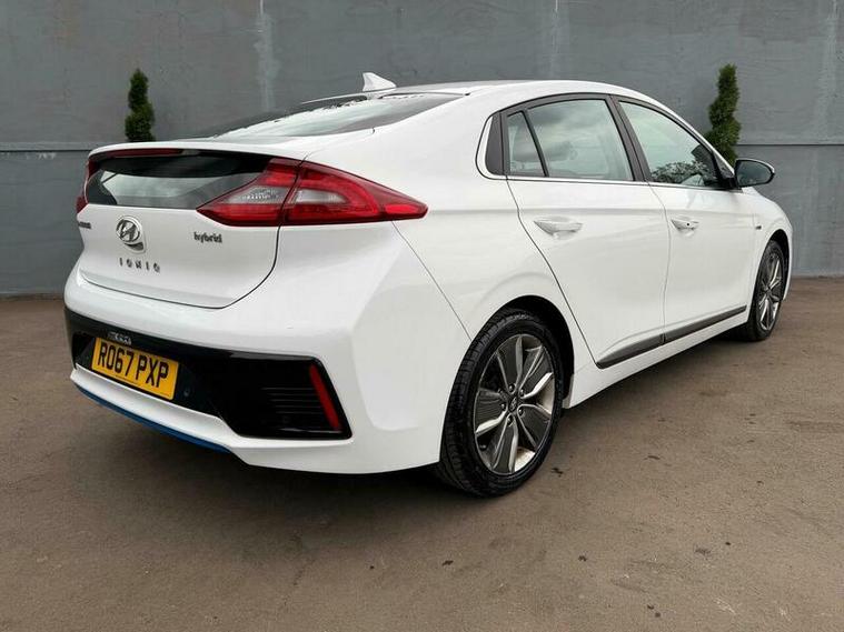 Shapo Wheels Limited presents the Hyundai IONIQ 1.6 h-GDi Premium SE DCT Euro 6 + AUTOMATIC + PETROL HYBRID + 5 DOOR + HPI CLEAR + FULL DEALER SERVICE HISTORY + LAST SERVICED IN OCTOBER 2025 + FRESH MOT + NAV + KEYLESS ENTRY + INFINITY SOUND SYSTEM + WIRELESS CHARGING + REVERSE CAMERA + HEATED STEERING WHEEL + APPLE CARPLAY + ANDROID AUTO + BLUETOOTH + FRONT & REAR PARKING SENSORS + HEATED LEATHER SEATS + AUTO LIGHTS + AUTO WIPERS + AUTO FOLDING MIRRORS + CRUISE CONTROL + ULEZ COMPLIANT + SPARE KEY PRESENT.