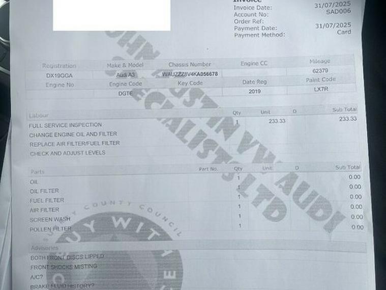 This car comes with 5 seats, Grey, 2 owners, 16in Alloy Wheels - 5-Star Design, 2 x USB Charging Ports and 1 x AUX-IN, 6-Airbag System with Knee Airbag for Driver, 8 Passive Speakers, Anti Theft Locking Wheel Bolts, Anti-Theft Alarm, Audi Connect, Audi Connect Infotainment Services - 3 Month Trial, Audi Smartphone Interface, Auto-Dimming Rear-View Mirror with Light and Rain Sensor, Bluetooth Interface, Body Coloured Door Mirrors, CD Drive, Cloth Headlining, Colour Drivers Information System - DIS, Cruise Control, DAB Digital Radio, Door Mirrors - Electrically Adjustable and Heated with Integrated LED Side Indicators, Dynamic Suspension, ESC - Electronic Stabilisation Control inc ABS - ASR and EDL, Electric Windows - Front and Rear, Electromechanical Parking Brake, Electromechanical Power Steering, First Aid Kit and Warning Triangle, Front Centre Armrest, Front and Rear Floor Mats, Heated Windscreen Washer Jets, Hill Hold Assist, ISOFIX Child Seat Mounting and Top Tether, Inlays - Micrometallic Silver, Interior Lighting, Lashing Points in Luggage Compartment, MMI Navigation - SD Card Based, MMI Radio Plus with 7in Electrically Retractable Colour MMI Screen, Manual Air Conditioning, Manual Seat Adjustment, Model and Engine Technology Badges at Rear, Non-Smoking Package, Radiator Grille - Matt Black, Rear Parking Sensors, Remote Central Locking with 2 Fold Away Keys, Roof Spoiler - Painted in Body Colour with Aerodynamic Inserts in High-Gloss Black at the Side, Seat Belt Monitoring, Split Folding Rear Seat Bench - 60-40 or Fully, Standard Seats, Steering Wheel - 3-Spoke Leather - Multi-function - Sports - Shift Paddles, Storage Compartments in the Door Side Trims-Centre Console-Under Drivers Seat, Tool Kit, Tyre Pressure Warning Light, Tyre Repair Kit, Voice Control System, Xenon Headlights with LED Daytime Running Lights,