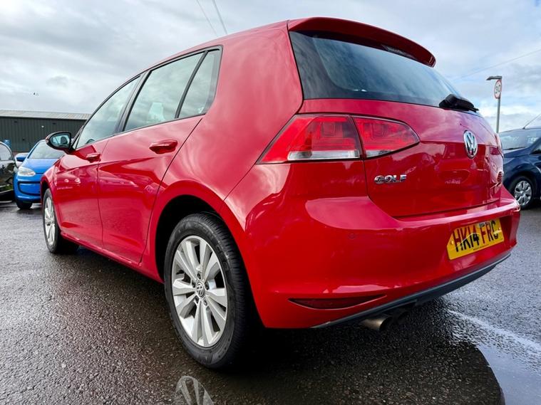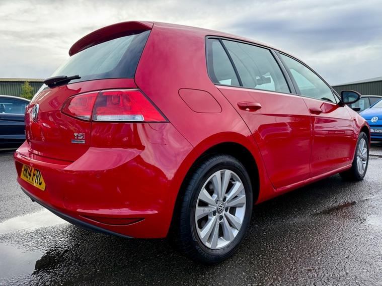 This 2014 Volkswagen Golf TSI SE offers an exceptional blend of efficiency and practicality, making it a standout choice. With its 1.4 litre petrol engine, this model boasts a remarkable fuel economy of 57 miles per gallon, alongside low CO2 emissions. The SE trim level ensures a comfortable and convenient driving experience, featuring automatic distance control with adaptive cruise control, a dusk sensor for automatic headlights, and Bluetooth telephone preparation. You'll also appreciate the manual air conditioning and the generous boot space, perfect for everyday needs and longer journeys., , The performance of this Golf is equally impressive, achieving 0 to 62 miles per hour in just 9.3 seconds. These highlights demonstrate how this Volkswagen Golf TSI SE offers a superior driving experience compared to other vehicles in its class, combining impressive acceleration with excellent running costs and ample storage., 3 months warranty, MOT Until 22/10/2026, Last serviced on 31/03/2025 at 87, 567 miles, Full service history, Cloth interior, 5 seats, Red, 2 owners, Upgrades - Parking Sensors - Front and Rear, Carpet Mats - Front and Rear, Standard Features - 12V Socket, 12V Socket - Luggage Compartment, 16in Alloy Wheels - Toronto, ABS - Anti-Lock Braking System, ADC - Automatic Distance Control, ASR - Anti Slip Regulation, Air Conditioning - Manual, Air Vent Surrounds - Chrome Effect, Airbags - Curtain Front and Rear, Airbags - Driver, Airbags - Drivers Knee, Airbags - Front Passenger, Airbags - Front Passenger with Deactivation Switch, Airbags - Front Seat Side Impact, Alarm with Interior Protection, Armrest - Front Centre with Ventilation Nozzles x2, Automatic Dimming Rear View Mirror, Automatic Post-Collision Braking System, Aux-In Socket, Black Front Air Intake and Radiator Grille with Chrome Trimmed Inserts, Bluetooth Telephone Preparation, Body Coloured Bumpers and Door Handles, Body-Coloured Door Mirrors with Integrated Indicators, Brake Pad Wear Indicator, Central Locking - Remote with 2 Remote Keys, Child Locks in Rear Doors, Composition Media System, Convenience Pack, Cruise Control, Cup Holders - Front x2, Cup Holders - Rear x2, DAB - Digital Radio Reception, Daytime Running Lights, Decor - Brushed Stainless Steel, Differential Lock - Electronic, Door Mirrors - Electrically Adjustable and Heated, Driver Alert System, Driver Profile Choices, Dust and Pollen Filter, ESP - Electronic Stability Programme, Electric Windows - Front and Rear, Electronic Engine Immobiliser, Electronic Parking Brake with Auto Hold Function, Exhaust Tailpipes - Twin, First-Aid Kit and Warning Triangle - Holder Only, Front Assist including City Emergency Braking, Front Seat Back Storage Pockets, Glovebox - Illuminated - Cooled - Lockable, Grab Handles - Front x2 Rear x2 with Coat Hooks, HBA - Hydraulic Brake Assist, Head Restraints - Front Whiplash Optimised, Headlights - Coming-Leaving Home Function, Headlights - Dusk Sensor - Automatic Driving Lights, Headlights - Halogen Clear - Range Adjustable, Height and Reach Adjustable Steering Column, High Level 3rd Brake Light - LED, ISOFIX Child Seat Preparation for 2 Rear Seats, Instrument Lighting - White Adjustable Panel Illumination, Interior Lighting Delay, Leather Trimmed Three-Spoke Steering Wheel and Gear Knob, Lighting Dial - Chrome Look, Lights on Warning Buzzer, Load Lashing Points x4 in Luggage Compartment, Load-Through Provision, Luggage Compartment - Hooks, Luggage Compartment Cover, Luggage Compartment Light, Luggage Compartment Storage Area on Right, MDI - Multi Device Interface with USB - iPod Connection Cables, Multifunction Computer, Multifunction Computer - 3.5in Display, Multiple Impact Brake Activation, Power Assisted Steering - Speed Sensitive, Pre-Crash Preventive Occupant Protection, Radar Sensor Controlled Distance Monitoring System, Radiator Grille - Black with Chrome Louvres, Radio & Single CD Player MP3 Compatible, Radio Aerial Integrated into Rear Windscreen, Rain Sensor, Reading Lights - Front x2 and Rear x2, Rear Centre Armrest, Rear Diffuser - Black, SD Card Reader, Safeguard Against Incorrect Fuel, Seatbelt Reminder, Seats - Front Comfort, Seats - Front Lumbar Support, Seats - Height Adjustment - Front, Seats - Rear Backrest with Automatic Folding, Spare Wheel - Space Saver Steel, Speakers x8, Split Folding Rear Backrests 60-40, Spoiler - Tailgate, Steering Wheel - Audio Controls, Storage - Cover for Area in Roof Console, Storage Compartment in Centre Console Covered, Storage Compartment in Front Doors, Storage Compartment in Rear Doors, Storage Compartment in Roof Console, Sun Visors - Vanity Mirrors and Illuminated, Temperature Display - External, Three Rear Head Restraints, Tinted Glass - Heat Insulating, Tyre Pressure Indicator, Under Seat Drawers - Front, Variable Boot Floor, Windscreen Wipers with Intermittent Wipe and 4 Position Delay, XDS Electronic Differential Lock.