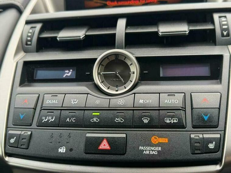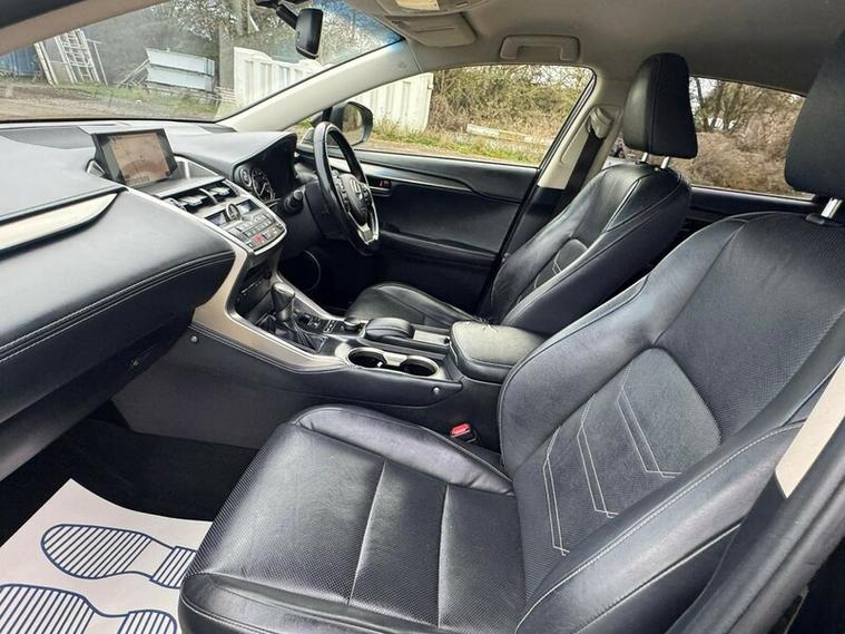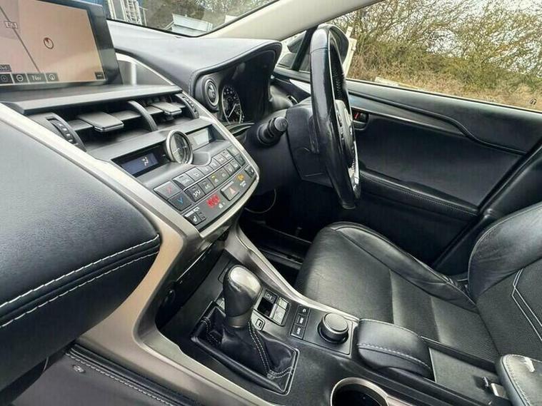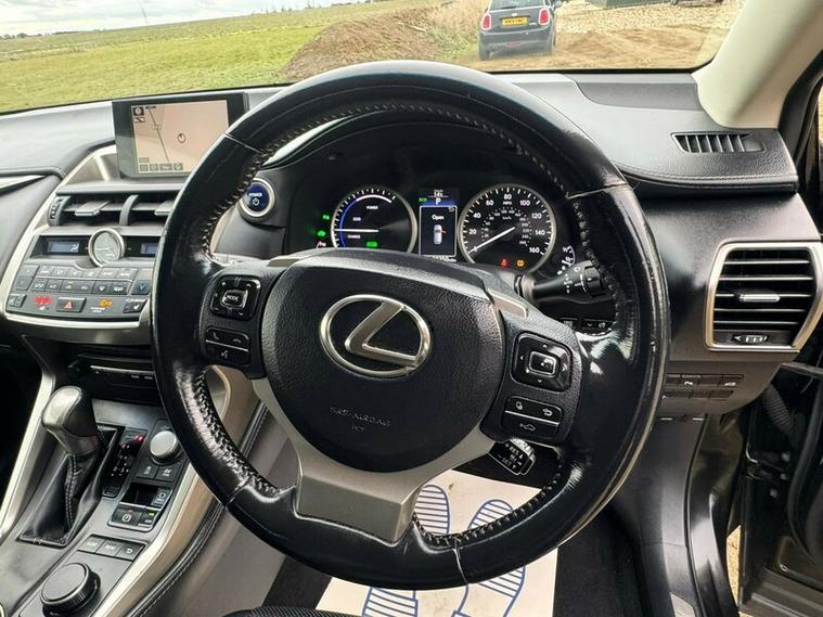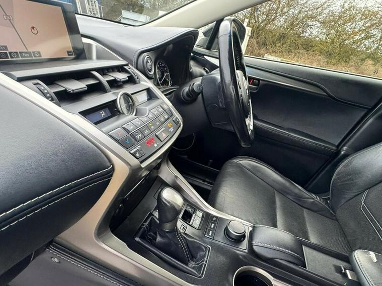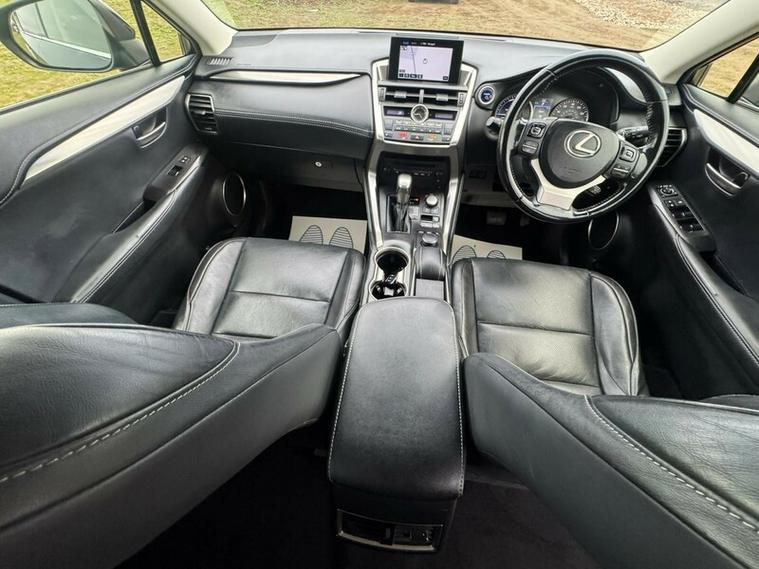 This Lexus NX 300h Luxury from 2015 boasts a clear vehicle history, offering you peace of mind. This four wheel drive model features a 2.5 litre petrol hybrid engine and meets Euro 6 emissions standards. It comes equipped with a Parking Pack for effortless manoeuvring, including front and rear parking sensors, and benefits from Smart and Easy Entry with keyless entry for convenience. The Luxury trim also includes heated front seats for added comfort and LED low beam headlights for improved visibility.