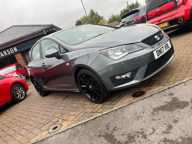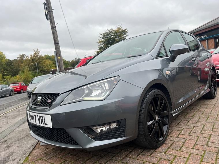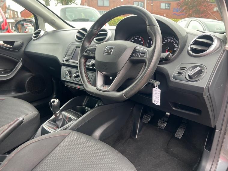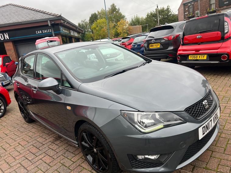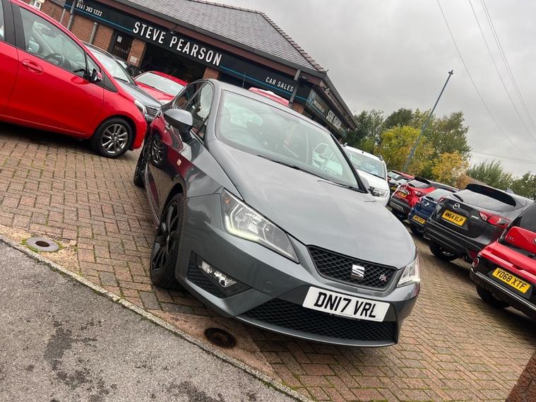 Steve Pearson Car Sales are Pleased to Present this Low Mileage Seat Ibiza 1.2 TSI FR Technology 5 Door in Metallic Grey. Only One Former Keeper with Full Service History. **£35 Road Tax** All usual Seat refinements include.... alloy wheels, air conditioning, ABS, cd player, central locking, electric windows/mirrors, power steering, adjustable steering, 12v power socket, AUX/USB Input, Bluetooth, body coloured bumpers, brake assist, cup holders, daytime running lights, front airbags, front fog lights, heated door mirrors, ISOFix anchor point, MP3, DAB Radio, touch screen media system, satellite navigation, side impact airbags, speakers, steering wheel controls, traction control etc.... Looks and Drives Superb. . Comes with 2 keys, professionally valeted and fully HPI checked. We welcome Part Exchange and can offer Great Finance Deals, , Please take a look at our TESTIMONIALS On our Website and Buy In confidence from a long Established Family Firm at dealer's website where we have over 60 cars in stock, for more information please telephone or pop in for a cup of tea! Our showroom and floodlit forecourt are open 7 days a week, , Tameside's Finest Collection of Low Mileage Quality Cars
