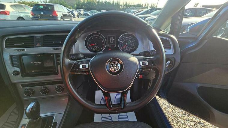 Inside, the Golf offers a spacious and comfortable cabin, with seating for five and a user-friendly dashboard layout. Standard features typically include air conditioning, Bluetooth connectivity, and a touchscreen infotainment system, enhancing the overall driving experience. The boot space is generous, providing ample room for luggage or other cargo, making it a practical choice for families or those needing extra storage capacity.