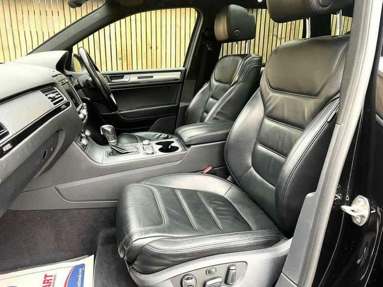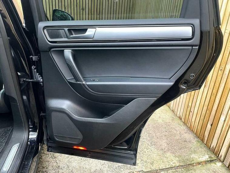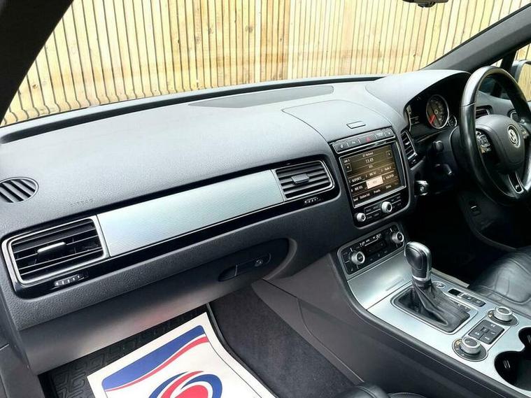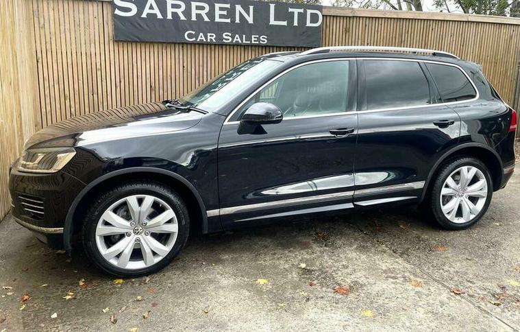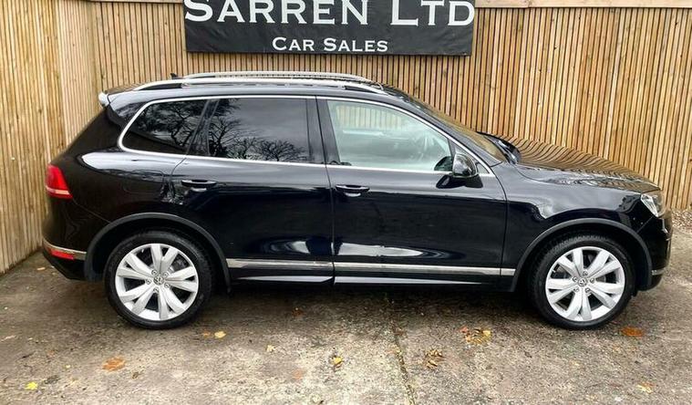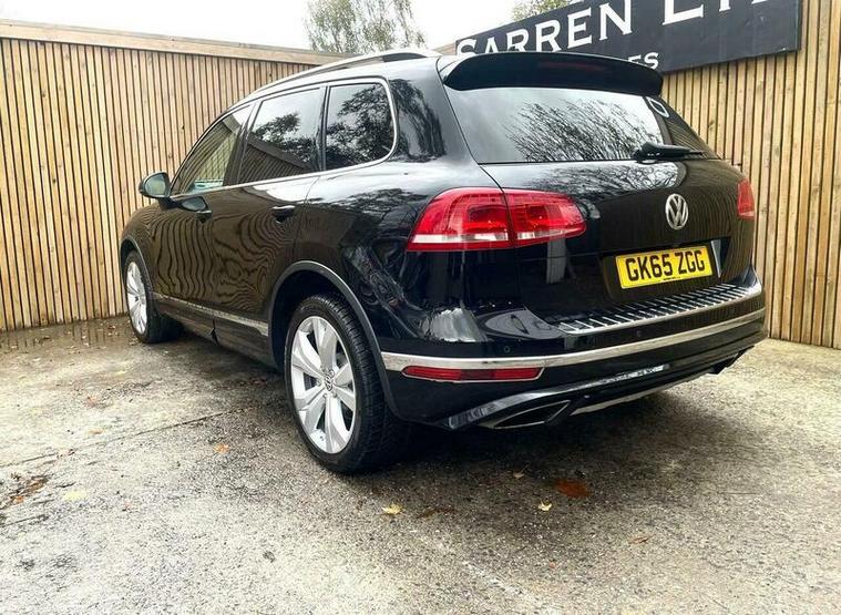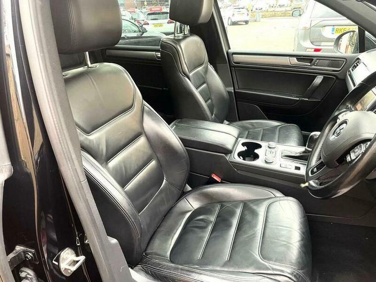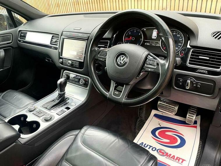 LOVELY EXAMPLE of the Volkswagen Touareg 3.0 TDI V6 BlueMotion Tech R-Line Tiptronic 4WD Euro 6 (s/s) 5dr finished in metallic black with excellent black leather interior. MOT due 02/11/2026 with no advisories. FULL service history (8 stamps) and freshly serviced at 81787 miles. Additionally this vehicle comes with 2 keys and 2 previous owners. Our Company does not receive any commission from the sale of our vehicles. Excellent specification including;