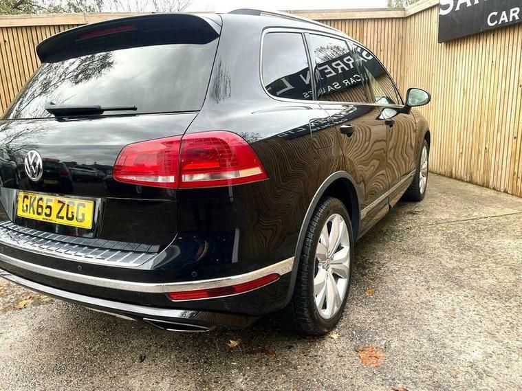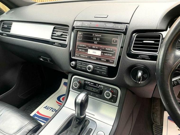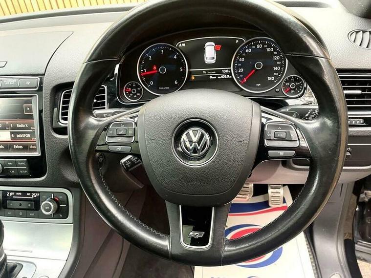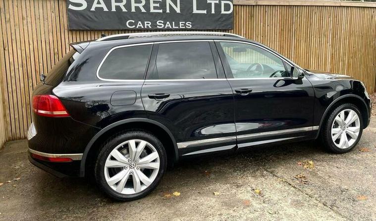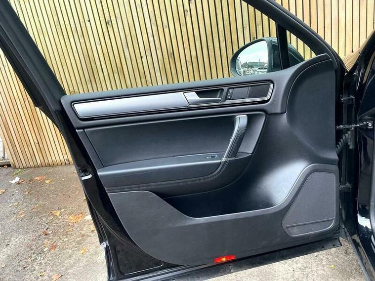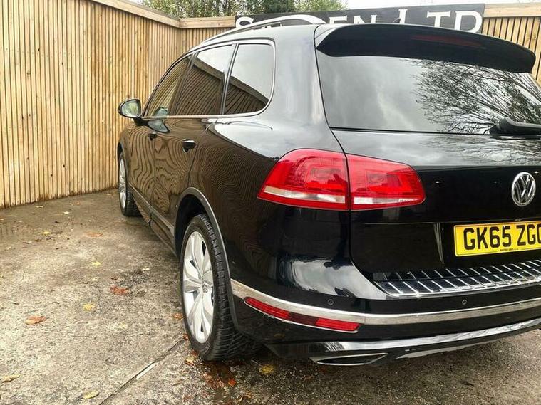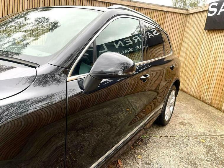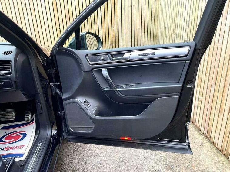 LOVELY EXAMPLE of the Volkswagen Touareg 3.0 TDI V6 BlueMotion Tech R-Line Tiptronic 4WD Euro 6 (s/s) 5dr finished in metallic black with excellent black leather interior. MOT due 02/11/2026 with no advisories. FULL service history (8 stamps) and freshly serviced at 81787 miles. Additionally this vehicle comes with 2 keys and 2 previous owners. Our Company does not receive any commission from the sale of our vehicles. Excellent specification including;