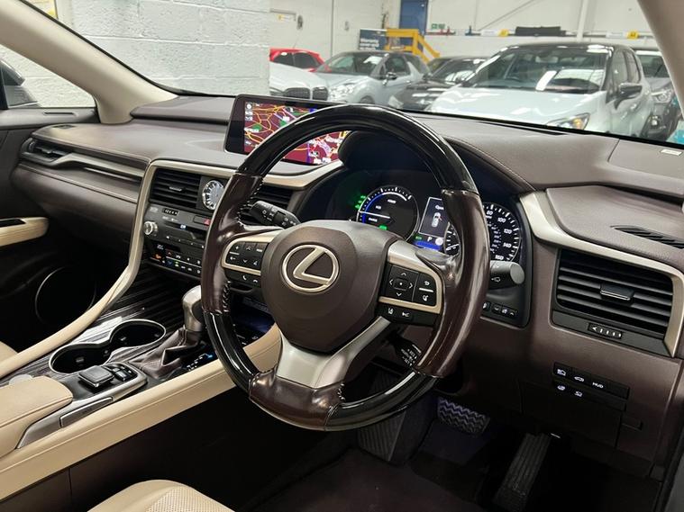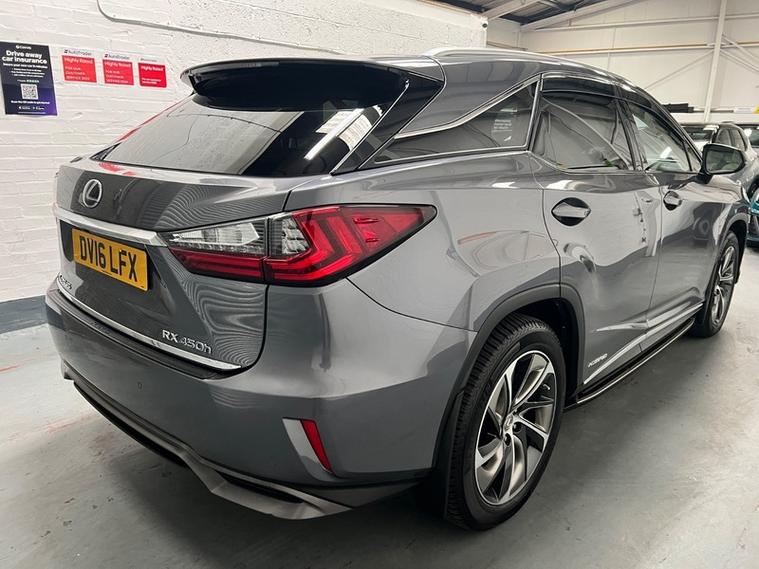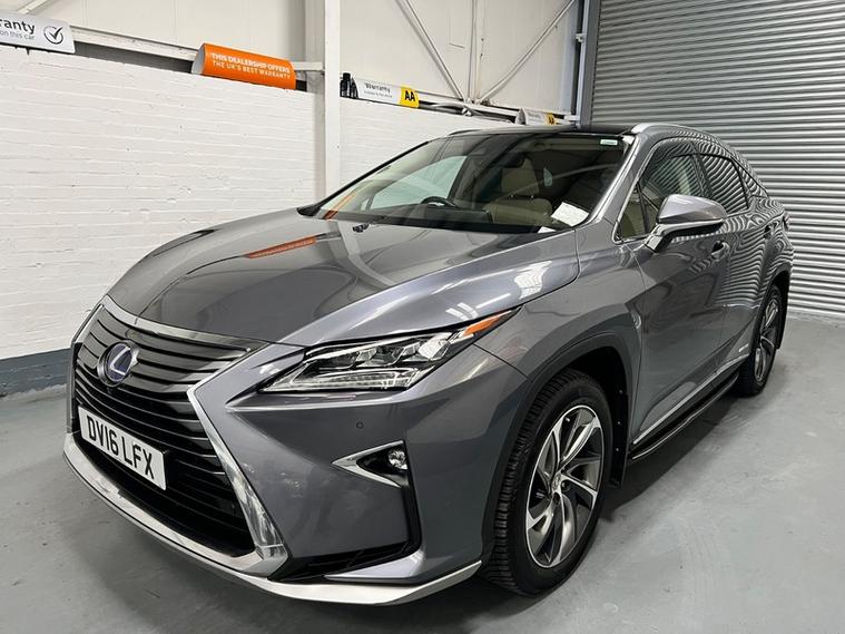 Car Box are delighted to be able to offer this gorgeous 2016 Lexus RX 3.5 450h V6 Premier CVT 4WD Petrol/Hybrid with 86k Miles and boasting a fullToyota dealership service history right up to May 202. This 2016 Lexus RX 450h Premier is a testament to meticulous care. This Four Wheel Drive SUV features a powerful 3.5L Petrol Hybrid engine, meeting Euro 6 emissions standards. The Premier trim level ensures a premium experience, complemented by the desirable SUV Pack which includes side underrun and side steps. Inside, you'll find comfort and convenience with front heated and ventilated seats, a smooth electric sunroof, and seamless Bluetooth connectivity. A clear vehicle history check and 12 months MOT and warranty provide added peace of mind.
