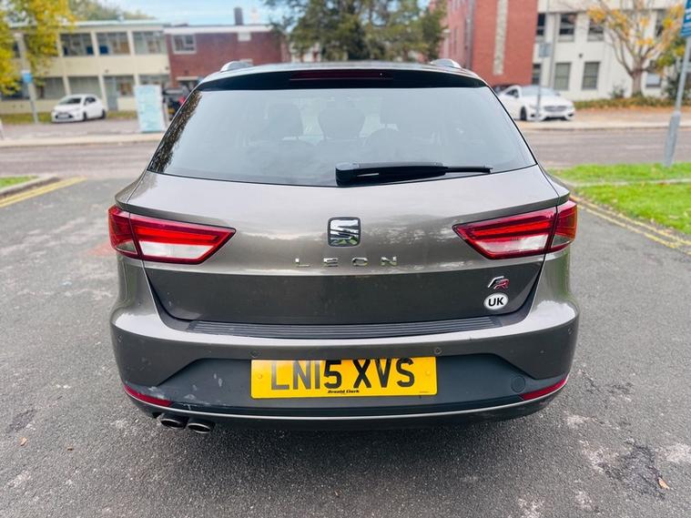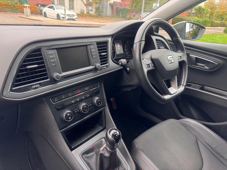 Seat Leon TSI FR Estate, 1.4 petrol engine, 6 speed manual gearbox, covered 78, 000 miles with full service history, excellent condition inside and out, half leather trim, 2x remote key, media player, navigation, central locking, electric windows, climate control, privacy glass, electric mirrors, 18? alloy wheels, quick clear front and rear screen, parking sensors, heated side mirrors, audio remote, bluetooth interface for hands-free telephony, AUX input, power steering, air conditioning, traction control, anti-lock brakes, front and side safety air bags, 3x3 point rear seat belts, ISO fix rear seats, excellent condition inside and out, full dealer facilities, low rate finance available, warranty included, card payments accepted, part exchange welcome, all vehicles HPI checked, viewing by appointment only.