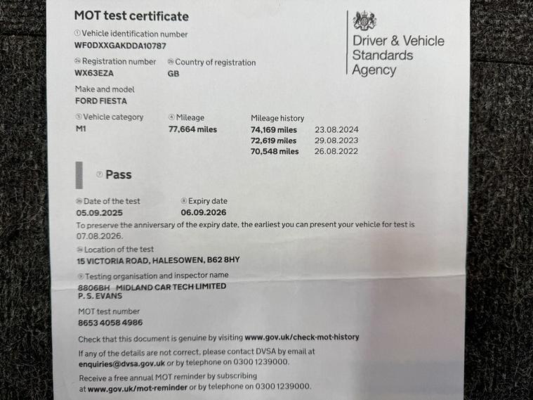 ABSOLUTE CARS have this 5 Door Ford Fiesta 1.0T EcoBoost Zetec Euro 5 (s/s) in Solid White with Alloys. An Ideal First Car + Only £20 a Year Tax ! Call in for a test drive, finance arranged & part exchange considered., 3 months warranty, Next MOT due 06/09/2026, Last serviced on 05/09/2025 at 77, 664 miles, Full service history, Grey Cloth interior, 5 seats, White, 2 owners, 12V Power Socket - Front, 15in Alloy Wheels - 5x2 Spoke, ABS - Anti-lock Braking System, Aesthetic Lighting Package, Air Conditioning - Manual, Airbags - Curtain, Airbags - Driver Side Knee, Airbags - Front Passenger, Airbags - Head and Thorax, Airbags - Passenger Deactivation, Brake Warning Lights - Automatic Flashing of Brake Lights Under Heavy Braking, Bumpers - Front and Rear - Body Colour, Centre Console - with Trinket Tray - Two Cup Holders, Chrome Belt Line Finisher, Courtesy Light - Overhead with Theatre-Style Dimming, Courtesy Lights with Map Reading Lights, Door Handles - Body Colour, Door Mirrors - Electrically Operated and Heated, Drivers Airbag, EBA - Emergency Brake Assist, EBD - Electronic Brakeforce Distribution, ECOmode, EPAS - Electric Power Assisted Steering, ESP - Electronic Stability Programme, Electric Windows - Front with One Touch Lowering Drivers, Emergency Brake Warning - Automatic Hazard Warning Lights, Ford AM-FM CD Audio System, Ford Easy Fuel Capless Refuelling System with Misfuel Inhibitor, Front Fog Lights - Chrome Bezel Rings, Front Lower Grille Insert and Surround - Black, Front Seatback Map Pockets - Driver and Passenger, Front Upper Grille - Chrome Finish Surround, Front Upper Grille Insert - Chrome bars, Gear Knob - Leather, Gearshift Indicator Light, Gearshift Knob - Leather-Trimmed with Chrome Finish Bezel, Glovebox - Illuminated, Handbrake Release Knob - Chrome, Head Restraints - 2-way Adjustment, Head Restraints - Rear 2-Way Adjustment, Headlights - Courtesy Delay, Headlights - Follow Me Home, Headlights - Halogen Projector with Silver Bezel, Headliner - Woven, Heated Front Windscreen, High-Mounted Rear Brake Light, Hill Start Assist, IPS - Intelligent Protection System, Interior Door Lever - Chrome Finish, LED Ambient Courtesy Lighting, Leather-Trimmed Handbrake, Loadspace Compartment Light, Loadspace Floor Carpet, Locking Wheel Nuts, MyKey, Passenger Airbag Deactivation Indicator, Passengers seat manual 2-way adjustment, Pollen Filter, Rake and Reach Steering Adjustable, Rear Courtesy Lights, Rear Seats Back - Carpet, Rear Spoiler - Body Colour, Remote Central Locking, Removable Package Tray, Seats - 60-40 Split Folding Back and Fixed Cushion, Seats - Drivers 4-Way Adjustment, Seats - Front Comfort Style, Seats - ISOFIX Mounting Brackets for Child Seats, Second Remote Ignition Key, Steering Wheel - 3-Spoke - Leather Trimmed with Bezel, Steering Wheel - Multifunction, Stowage Pockets - Driver and Front Passenger Seatbacks, Suspension - Front Stabiliser Bar, Tailgate Handle - Body Colour with Chrome Finisher, Trip Computer, Tyre Inflator Kit, USB and AUX Connection for External Music Devices, AS WE ARE AN AA CARS DEALER THIS VEHICLE COMES WITH 12 MONTHS AA BREAKDOWN COVER.