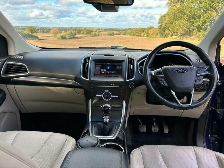 This 2016 Ford Edge TDCi Titanium is presented with a clear vehicle history check, offering you complete peace of mind. Powered by a robust 2.0 litre diesel engine and featuring Four Wheel Drive, this Euro 6 compliant model combines efficiency with capability. The Titanium trim level ensures a premium experience, further enhanced by the desirable Lux Pack which includes a panoramic opening sunroof, heated seats with memory function, and a heated steering wheel for ultimate comfort.
