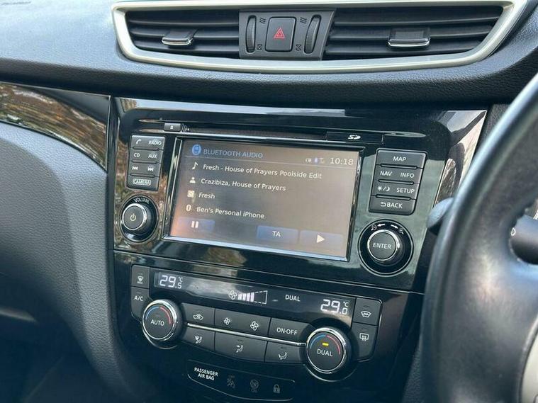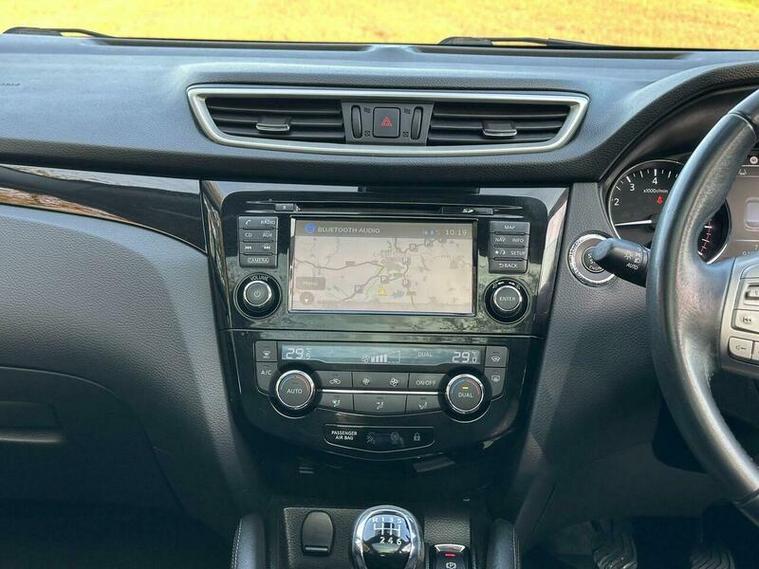 This 2016 Nissan Qashqai DIG-T N Connecta is a superb example, having had only two owners from new. This popular crossover boasts a 1.2 litre petrol engine and meets Euro 6 emissions standards. It comes equipped with the desirable Comfort Pack, featuring an opening panoramic sunroof, and the Heat Pack, which includes heated seats for those colder journeys. The Tech Pack adds convenience with Bluetooth connectivity and a 360 degree parking assistance camera, complemented by an Intelligent Key for keyless entry. Inside, you'll find dual zone climate control air conditioning, ensuring comfort for all occupants.