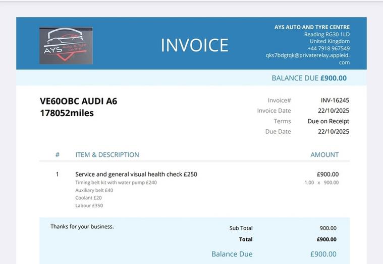 Spent 900£ at the last service and MOT repairs (receipt attached).