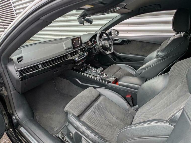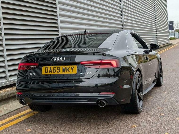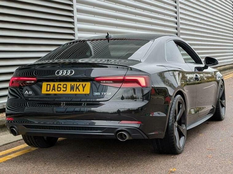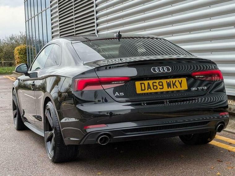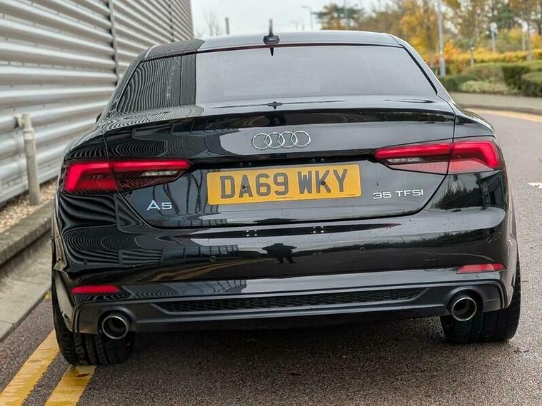 This Audi A5 TFSI Black Edition from 2019 presents a superb ownership history, having had only two previous owners. This stylish coupe boasts a 2.0 litre petrol engine and meets Euro 6 emissions standards. Inside, you'll find comfort and convenience with Deluxe 3-Zone Electronic Climate Control, heated front seats, and a Bluetooth interface for seamless connectivity. The Light and Rain Sensor automatically manages the headlights, which are LED units complemented by LED rear lights featuring dynamic rear indicators for enhanced visibility.