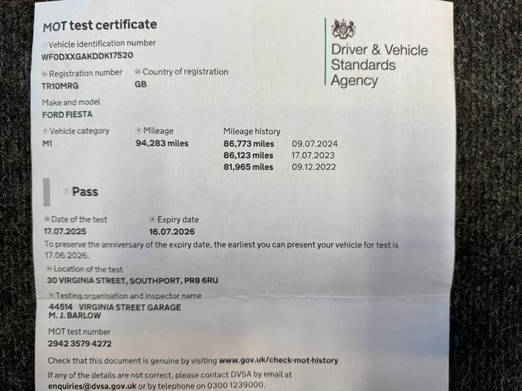 ABSOLUTE CARS have this 5 Door Ford Fiesta 1.25 Zetec Euro 5 in Solid White with Alloys. *CAMBELT REPLACED 07/10/2023 at 86, 773 MILES* An Ideal First Car + Only £35 a Year Tax ! Call in for a test drive, finance arranged & part exchange considered., 3 months warranty, Next MOT due 16/07/2026, Last serviced at 93, 445 miles, Part service history, Grey Cloth interior, 5 seats, White, 3 owners, Upgrades - Spare Wheel - 14in Steel, Standard Features - 12V Power Socket - Front, 15in Alloy Wheels - 5x2 Spoke, ABS - Anti-lock Braking System, Aesthetic Lighting Package, Air Conditioning - Manual, Airbags - Curtain, Airbags - Driver Side Knee, Airbags - Front Passenger, Airbags - Head and Thorax, Airbags - Passenger Deactivation, Brake Warning Lights - Automatic Flashing of Brake Lights Under Heavy Braking, Bumpers - Front and Rear - Body Colour, Centre Console - with Trinket Tray - Two Cup Holders, Chrome Belt Line Finisher, Courtesy Light - Overhead with Theatre-Style Dimming, Courtesy Lights with Map Reading Lights, Door Handles - Body Colour, Door Mirrors - Electrically Operated and Heated, Drivers Airbag, EBA - Emergency Brake Assist, EBD - Electronic Brakeforce Distribution, ECOmode, EPAS - Electric Power Assisted Steering, ESP - Electronic Stability Programme, Electric Windows - Front with One Touch Lowering Drivers, Emergency Brake Warning - Automatic Hazard Warning Lights, Ford AM-FM CD Audio System, Ford Easy Fuel Capless Refuelling System with Misfuel Inhibitor, Front Fog Lights - Chrome Bezel Rings, Front Lower Grille Insert and Surround - Black, Front Seatback Map Pockets - Driver and Passenger, Front Upper Grille - Chrome Finish Surround, Front Upper Grille Insert - Chrome bars, Gear Knob - Leather, Gearshift Indicator Light, Gearshift Knob - Leather-Trimmed with Chrome Finish Bezel, Glovebox - Illuminated, Handbrake Release Knob - Chrome, Head Restraints - 2-way Adjustment, Head Restraints - Rear 2-Way Adjustment, Headlights - Courtesy Delay, Headlights - Follow Me Home, Headlights - Halogen Projector with Silver Bezel, Headliner - Woven, Heated Front Windscreen, High-Mounted Rear Brake Light, IPS - Intelligent Protection System, Interior Door Lever - Chrome Finish, LED Ambient Courtesy Lighting, Leather-Trimmed Handbrake, Loadspace Compartment Light, Loadspace Floor Carpet, Locking Wheel Nuts, MyKey, Passenger Airbag Deactivation Indicator, Passengers seat manual 2-way adjustment, Pollen Filter, Rake and Reach Steering Adjustable, Rear Courtesy Lights, Rear Seats Back - Carpet, Rear Spoiler - Body Colour, Remote Central Locking, Removable Package Tray, Seats - 60-40 Split Folding Back and Fixed Cushion, Seats - Drivers 4-Way Adjustment, Seats - Front Comfort Style, Seats - ISOFIX Mounting Brackets for Child Seats, Second Remote Ignition Key, Steering Wheel - 3-Spoke - Leather Trimmed with Bezel, Steering Wheel - Multifunction, Stowage Pockets - Driver and Front Passenger Seatbacks, Suspension - Front Stabiliser Bar, Tailgate Handle - Body Colour with Chrome Finisher, Trip Computer, USB and AUX Connection for External Music Devices, AS WE ARE AN AA CARS DEALER THIS VEHICLE COMES WITH 12 MONTHS AA BREAKDOWN COVER.