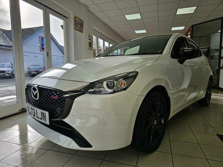 This 2023 Mazda2 e-SKYACTIV G Homura, In a very nice colour combanation in White with Black Alloys . Comes with 2 Keys, Handbook Pack & Service history, ONLY COVERED 8, 315 Miles. This stylish hatchback is powered by an efficient 1.5L petrol engine, meeting Euro 6 emissions standards, and boasts a striking Homura trim. Inside, you'll find modern conveniences such as wireless Apple CarPlay and wired Android Auto, allowing seamless smartphone integration. For enhanced visibility and safety, it features LED headlights and a reversing camera complemented by rear parking sensors, while the climate control ensures a comfortable cabin environment.