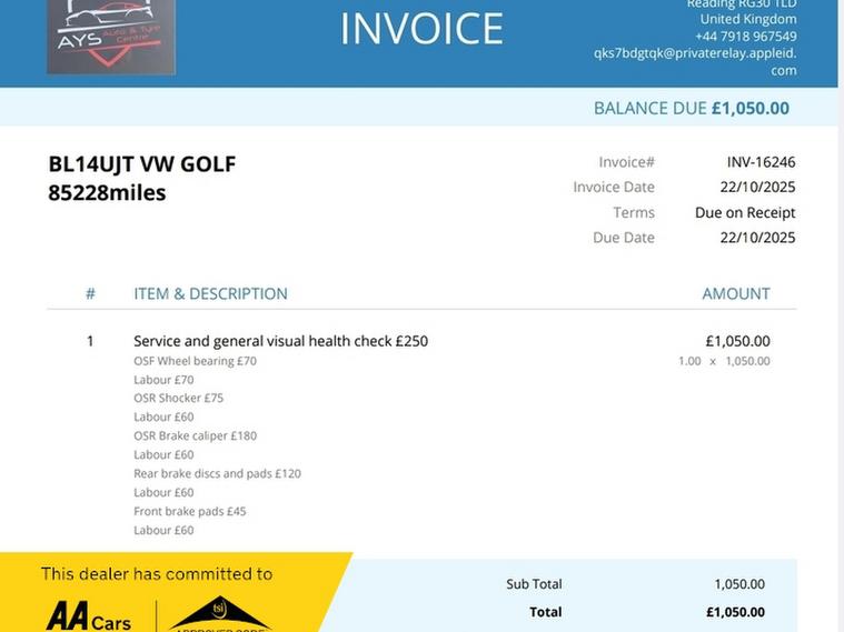 Spent 1050£ at the last service and MOT repairs.(receipt attached).