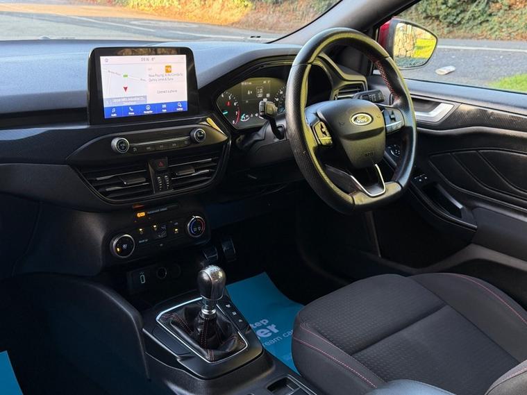 93, 200 Miles. This absolute stunner of a Ford focus is offered for sale here at Keepers Cars of Stonehouse. Finished in gorgeous Ruby Red Metallic coachwork, with sporty red stitched sports interior. Presented in high specification, ST-Line trim, this Focus' highlights include; 17' Rock Grey Alloy wheels, LED Daytime running lights, Parking sensors, Remote central locking, Keyless start, Air conditioning, Trip and fuel computer, Satellite navigation, Auto headlamps, Cruise control, DAB/AM/FM Radio with USB connectivity, Electric windows, Electrically adjusted and folding door mirrors, Quickclear heated front windscreen, Multiple airbags, Multifunctional steering wheel and Power assisted steering. The car comes with all original Ford literature, including various owners guides and service history log, all contained within original Ford wallet. The car comes with 2 keys. The V5/c registration document and current MOT certificate with NO ADVISORIES are both present and correct. We are just 5 minutes from the M5 Junction 13, in Stonehouse Gloucestershire. Any inspection or demonstration welcomed and encouraged. Part exchange also welcomed. Viewing by appointment only please. For more photos and information visit our website dealer's website All our vehicles come complete with 3 months or 3, 000 miles warranty, and 12 months complimentary AA breakdown cover for added peace of mind. Payment by bank transfer or a maximum of £5, 000 physical bank notes per sale. Check out what our customers say about us, google Keepers Cars Reviews, we hope you will be as impressed about what our customers say, as we are proud. Keepers Cars of Stonehouse, awarded HIGHLY RATED by Autotrader; 201453412186, 3 months warranty, Next MOT due 23/10/2026, Last serviced on 24/10/2025 at 93, 137 miles, Full service history, Good bodywork, Black Cloth interior - Good Condition, Tyre condition Good, 5 seats, Metallic Ruby Red, Upgrades - Ford SYNC3 DAB Navigation System, £7, 690.