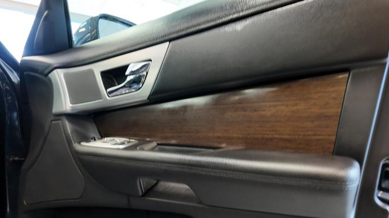 Inside, the XF D Luxury offers a calm, premium environment with soft-grain leather upholstery, real wood veneer trim, and ambient lighting. The cabin feels solid, quiet, and beautifully put together.