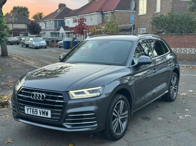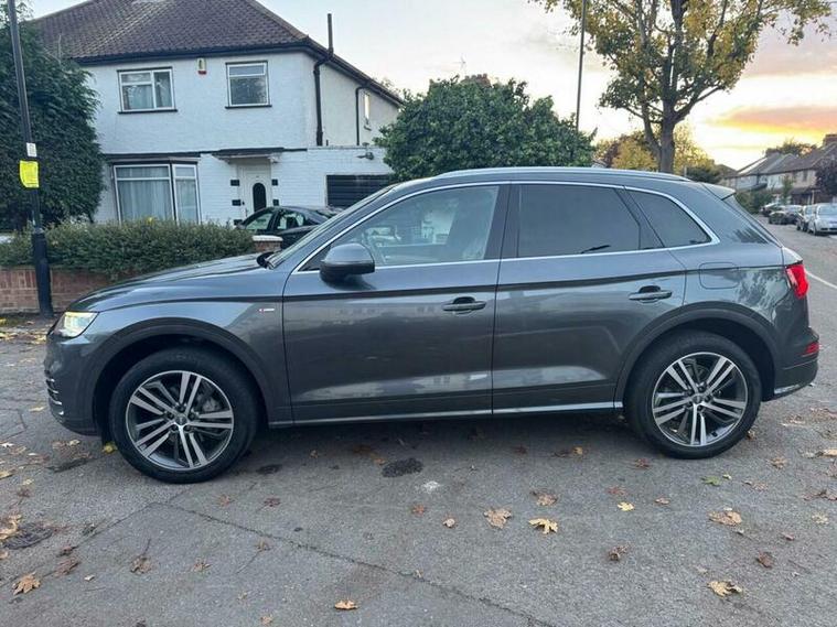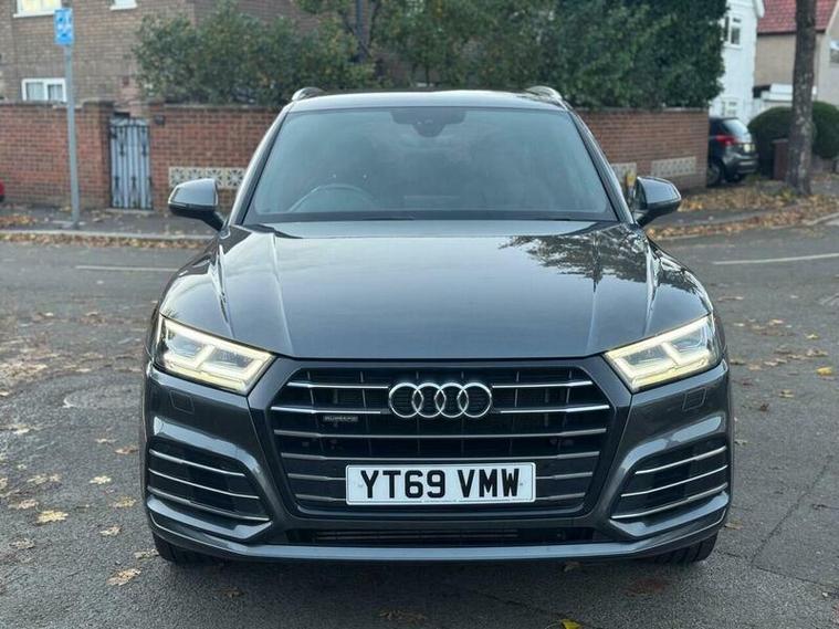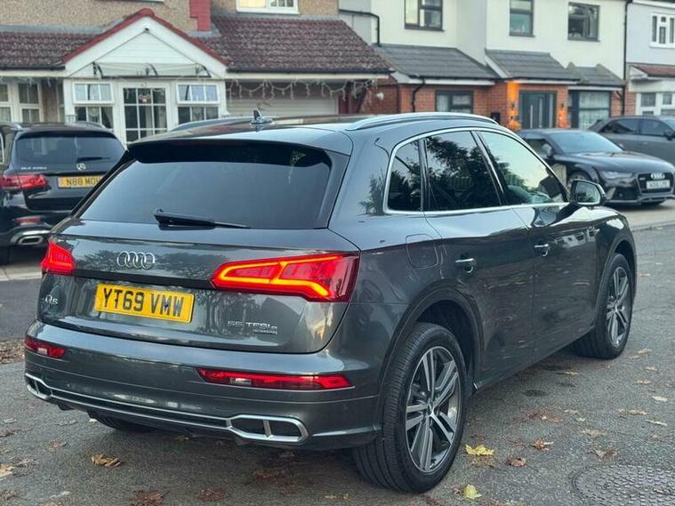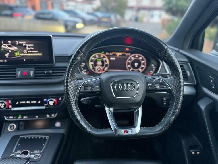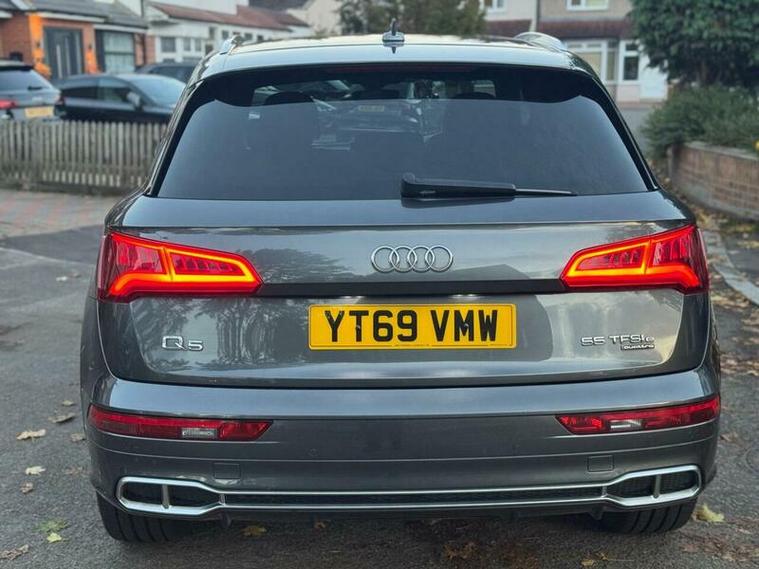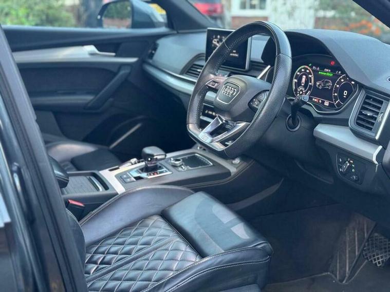 This 2019 Audi Q5 TFSIe S line Competition boasts a clear vehicle history, offering you peace of mind. This four wheel drive model features a 2.0 litre petrol plug-in hybrid engine, meeting Euro 6 emissions standards. Inside, you'll find a comfortable cabin equipped with a Storage Package, Bluetooth interface, and Deluxe 3-zone climate control. For convenience, it includes Audi Parking System Plus with front and rear sensors, and heated front seats.
