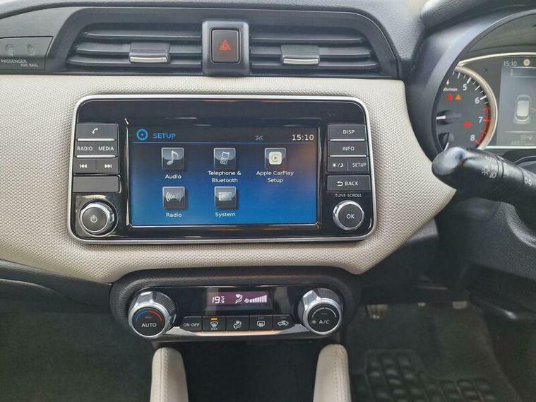 Discover this 2018 Nissan Micra IG-T Acenta, a smart choice for those seeking an economical and well equipped compact car. This Euro 6 compliant model boasts a responsive 0.9L petrol engine, making it an efficient companion for both city driving and longer journeys. Inside, you'll appreciate the convenience of automatic air conditioning, ensuring a comfortable cabin temperature no matter the weather. Stay connected and entertained with seamless smartphone app integration, including Apple CarPlay, and enjoy the ease of Bluetooth connectivity for hands free calls and music streaming. The intelligent key system allows for keyless entry, while automatic headlights provide added visibility and convenience.
