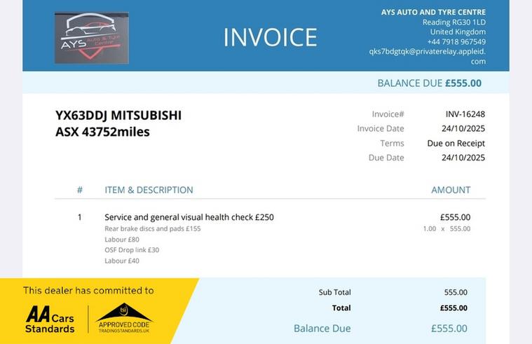 Spent 555£ at the last service and MOT repairs. (receipt attached)