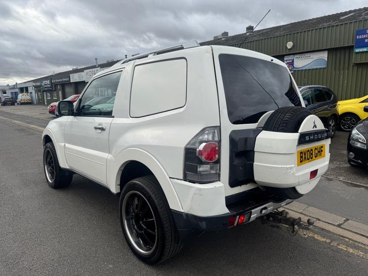 2008 Mitsubishi Shogun 3.2 DI-DC Equippe Van in White. Rare Shogun Van benefitting from commercial Road Tax (£345 Annual Tax NOT £735 which the 3.2 shoguns of this age are). Runs and Drives very well and pulls strong in all gears, the 3.2 Diesel Shogun is known for its strong off-road capability and towing ability (3000kg). This example is supplied with a October 2026 MOT and is solid underneath, it has been undersealed to further protect the underside components. Polybushed suspension all round, uprated suspension with rear spring assisters, 20 inch alloy wheels, Metal tow bar with 7 pin electrics, Working air conditioning, Electric folding mirrors, Selectable 2WD and 4WD modes and more. 6 Months Warranty with the sale. Has a good amount of recent service history including a recent Clutch and Flywheel at over £1000. Has been used as a workhorse and is not in pristine condition however it is a good looking truck with good road presence and is useful for multiple purposes.