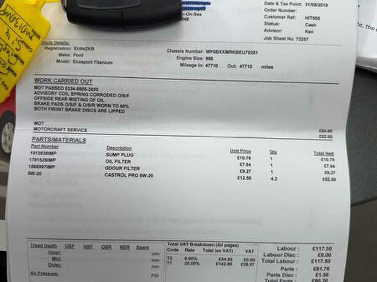 Basford motors ltd delighted to offer this lovely Ford EcoSport 1.0T EcoBoost Titanium 2WD Euro 5 (s/s) 5drBoasting a great service history and only two previous owners, this 2014 Ford EcoSport T Titanium presents a compelling proposition for any discerning driver. Powered by an efficient 1.0L petrol engine, this model offers a remarkable 53 miles per gallon, low insurance grope 11E, making it an economical choice for your daily journeys. The Titanium trim level ensures a comfortable and convenient experience, featuring Electronic Automatic Temperature Control for effortless climate management and keyless entry for seamless access. Furthermore, this vehicle comes with 12 months MOT provided on purchase and a 3 month warranty for your peace of mind.next MOT 04.11.2026