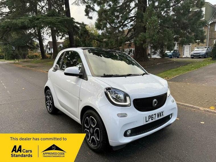 Last service November 2025, mot expiry November 2026, satellite navigation, Bluetooth, reversing camera, drive smooth, This 2018 Smart Fortwo Prime (Premium Plus) is a superb example, having had only one owner from new. It features a responsive 1.0 litre petrol engine, meeting the Euro 6 emission standards. The Prime trim level, enhanced with the Premium Plus Equipment Line, includes convenient features such as Bluetooth connectivity, automatic headlights, and rear parking assistance with a camera and sensors. Comfort is further elevated by the Cool and Audio Package, which incorporates automatic climate control and heated seats for both the driver and front passenger, alongside a fixed panoramic roof with sun protection.