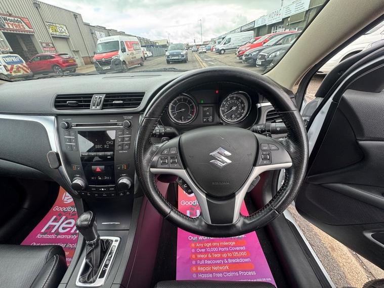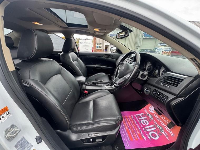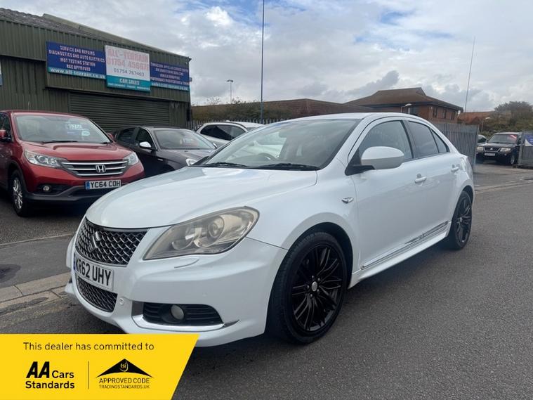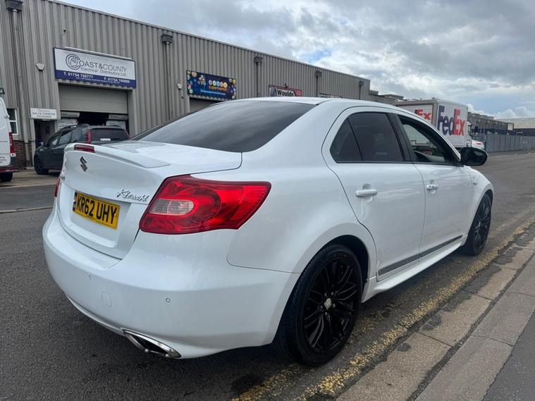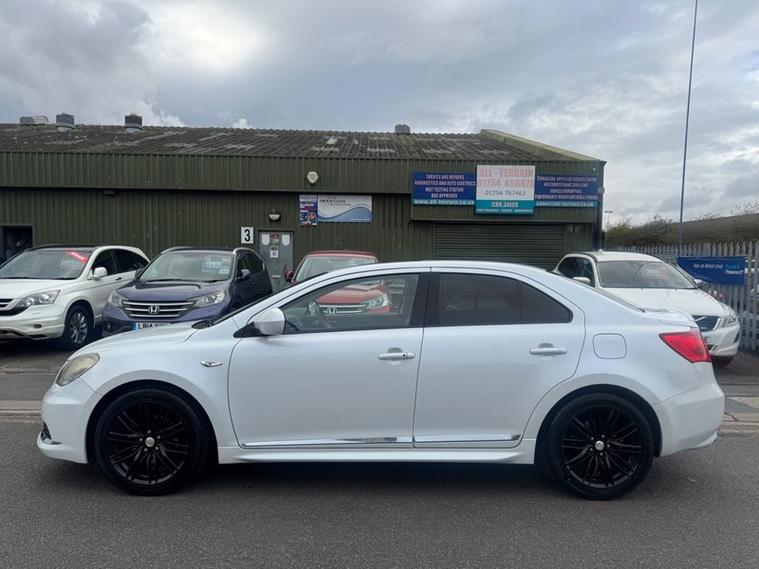 2013 (62) Suzuki Kizashi 2.4 Sport 4x4 4dr CVT Automatic in White. Low mileage for this reliable Japanese saloon with just 90, 000 miles. Rare model with a great specification including Full leather heated electric seats, Cruise control, Bluetooth connectivity, Automatic lights/wipers, 18 inch alloy wheels, Front & Rear parking sensors, Electric opening sunroof, Keyless entry/exit with start/stop button, Changeable 2WD and 4WD driving modes, Semi Automatic mode with paddle shifters, Dual climate control with working air conditioning, Bluetooth connectivity and more. Runs and Drives brilliantly. The Suzuki Kizashi combines a smooth and comfortable drive with performance and practicality. Very clean example and looks great in the white with black wheels. 12 Months MOT, Service and 6 Months with the sale. A lovely example of a unique and eye catching vehicle. Finance Available.