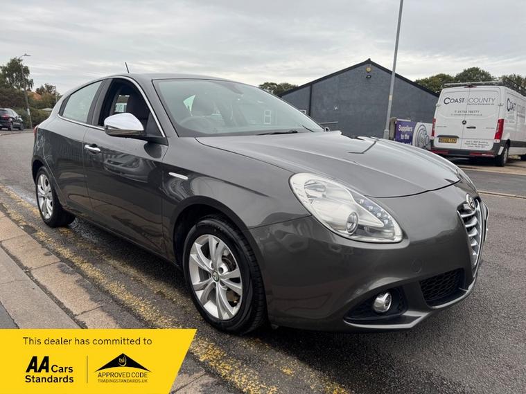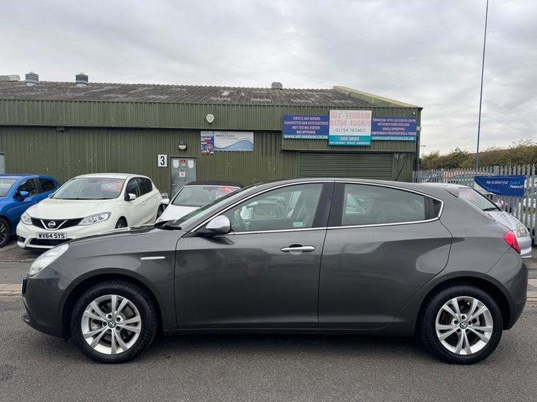 2014 (64) Alfa Romeo Giulietta 2.0 JTDM-2 Distinctive 5dr in Grey. Great looking vehicle with ultra low running costs, just £20 annual road tax and can average 67+ MPG combined and 76+ MPG combined. 2.0 diesel, very fast considering its economy with 150 BHP and over 380 NM of torque and is enhanced by the 3 driving modes (All Weather, Neutral and Dynamic). Lovely condition for a now 11 year old vehicle. Working Air conditioning, Cruise control, Bluetooth, DAB Radio, Stop/Start, AUX port, Rear parking sensors. 16 inch alloy wheels and more. 12 Months MOT, 6 Months Warranty and Fresh service with the sale. Low mileage with just 76k on the clock. A really nice example. Finance Available
