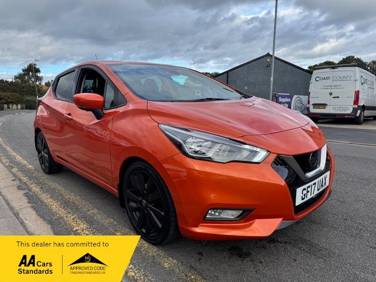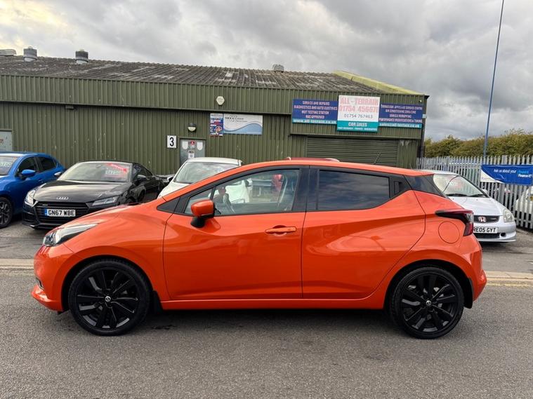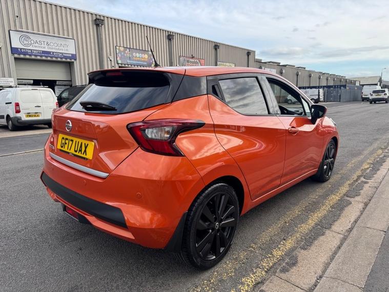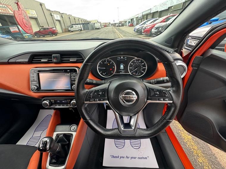 2017 Nissan Micra 1.5 dCi Tekna 5dr in Energy Orange. Low mileage example with just 48, 000 miles and drives faultlessly. Rare diesel variant and even rarer being registered before 31/03/2017 making it just £20 Road Tax as opposed to £195 on models April 2017 onwards, this example is registered 30/03/2017. Incredible fuel economy with this example able to average over 80 MPG combined. Full Service History and 2 keys. Great looking example in the metallic orange complemented by the black wheels and accents. High spec Tekna with Navigation, 360 Reverse Camera, Bluetooth phone+music, Cruise control, Leather flat bottom steering wheel, Auto lights/wipers, 17 inch alloy wheels, Heated seats, Lane assist, Bose personal sound and more. 12 Months Mot, Service and 6 Months Warranty with the sale. Stunning low mileage example with full service history. Finance Available