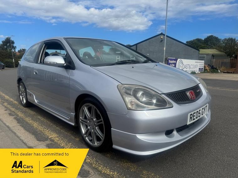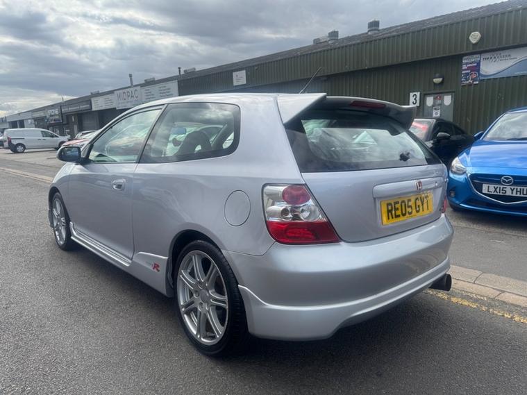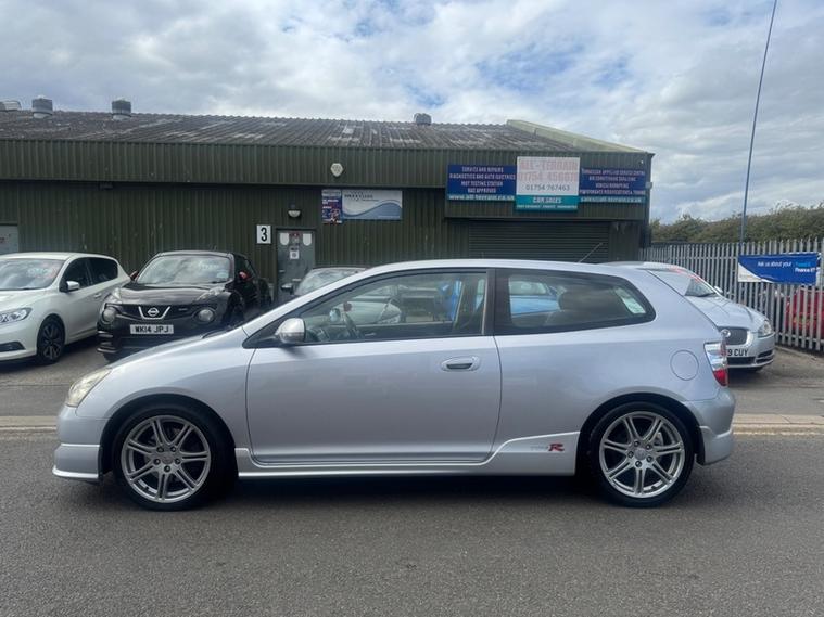 2005 Honda Civic 2.0 i-VTEC Type-R 3dr in Silver. Rare and Desirable EP3 Civic Type-R highly praised for its raw and thrilling driving experience that ultimately its supposed successor (the FN2 Type-R) disappointed on. This EP3 is in highly impressive condition inside and out for its age and drives brilliantly with VTEC performing faultlessly. With 13 Services stamps, this example has been well cared for and has 2 keys. Rarer facelift example which comes noticeably with an updated front bumper, indicators on wing mirrors, updated rear lights, projector front lights and Red and black Type R front seats to name a few. There is also some mechanical enhancements including a lighter flywheel and revised suspension improving the 0-60 time from 6.6 seconds to 6.4 seconds. Everything is in good working order including cold air conditioning. Full Service and 6 Months Warranty with the sale. A nice example of the appreciating Civic EP3 Type-R.