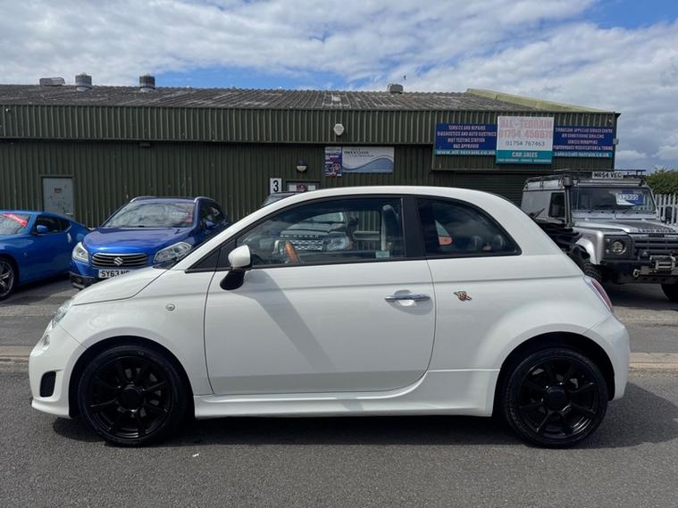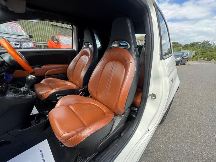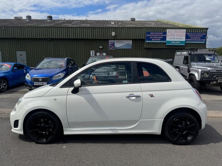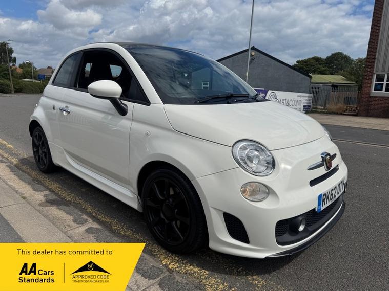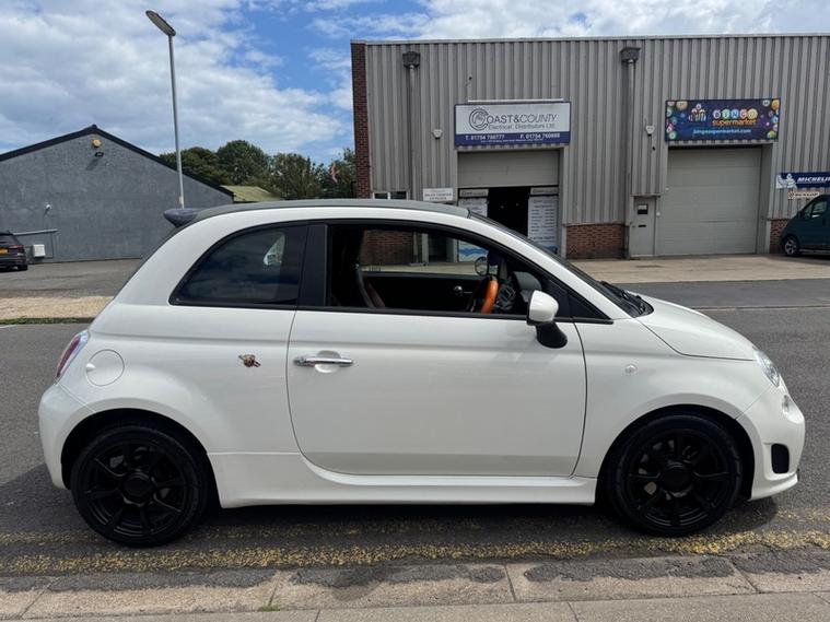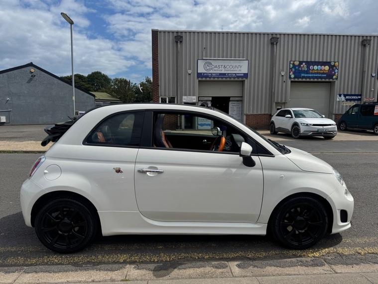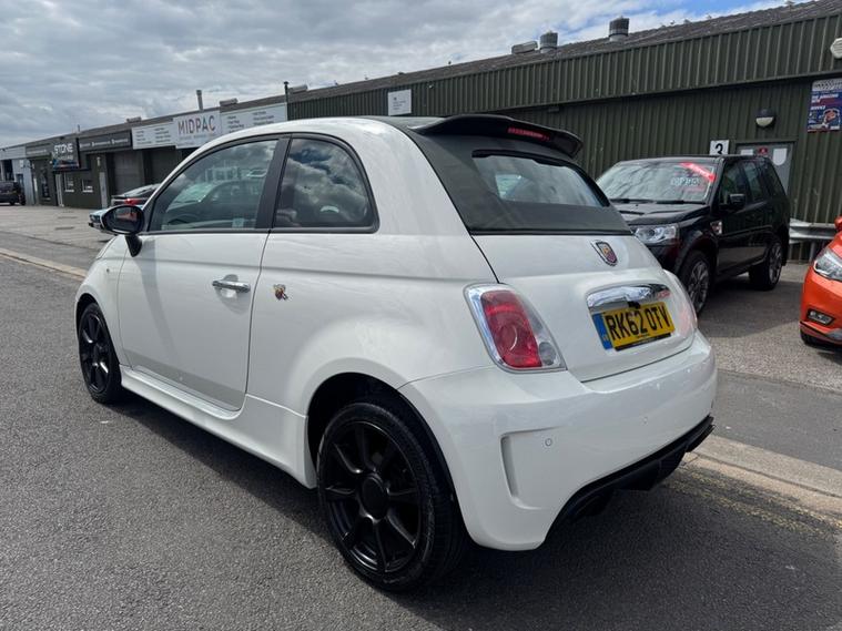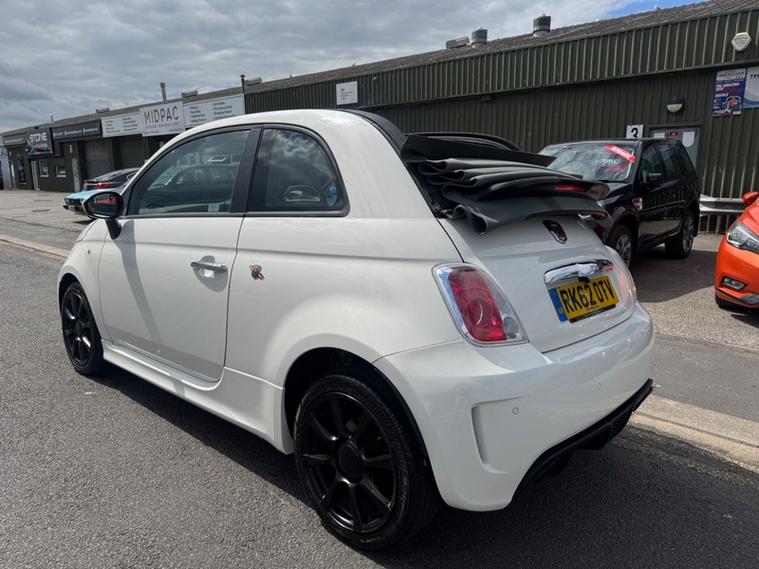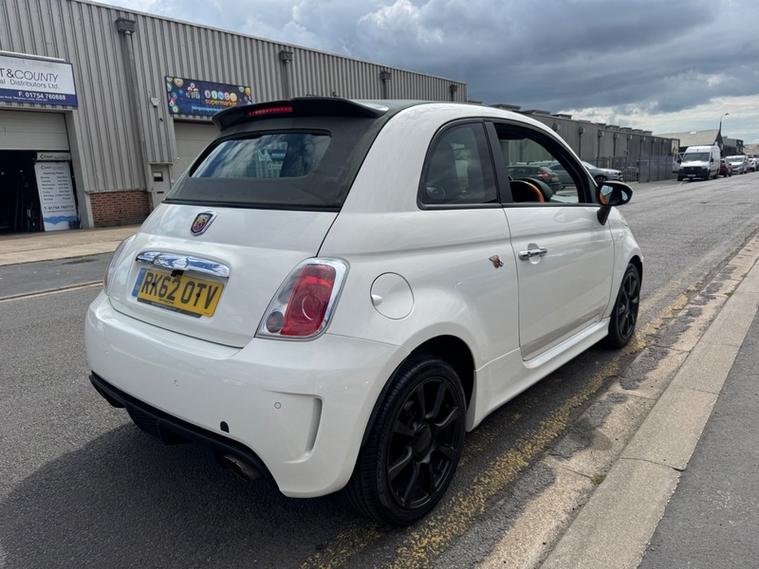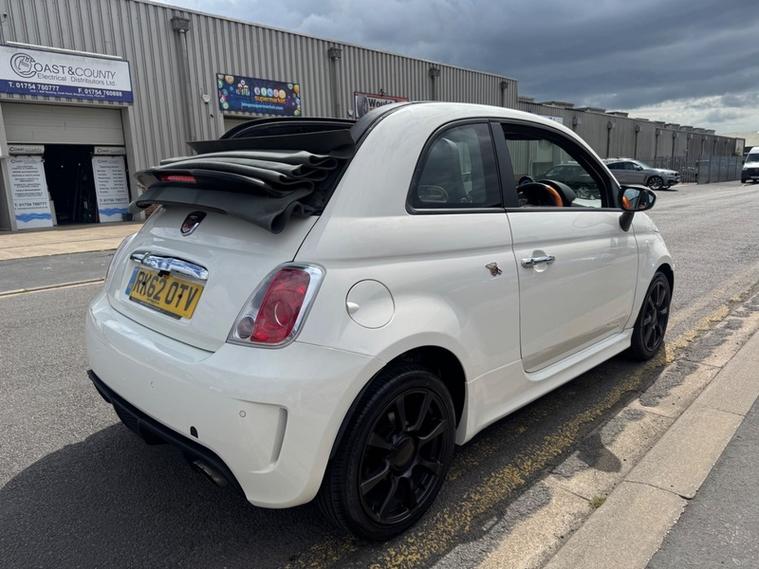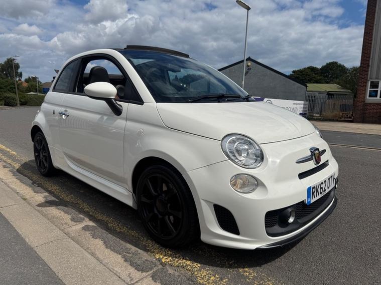 2013 (62) ABARTH 500C 1.4 T-Jet 135 2dr. Rare convertible model which works perfectly and has 3 position settings. Really fun car with great performance from the 1.4 turbo engine producing 135 BHP and importantly 206 NM of torque, once up the Rev range this little car will excite even the most hardcore car enthusiasts. Highly impressive condition and looks stylish in the white with contrasting dark wheels and convertible roof. Manual gearbox which suits this car perfectly. As well as this you can average over 40 MPG combined and over 50 MPG on a run making it a sensible option for those seeking performance as well as practicality. This example has an upgraded exhaust which is sure to turn heads. 12 Months MOT, Full Service and 6 Months Warranty will come with the sale. A very sensible performance car that can be used on a daily basis. Finance Available.