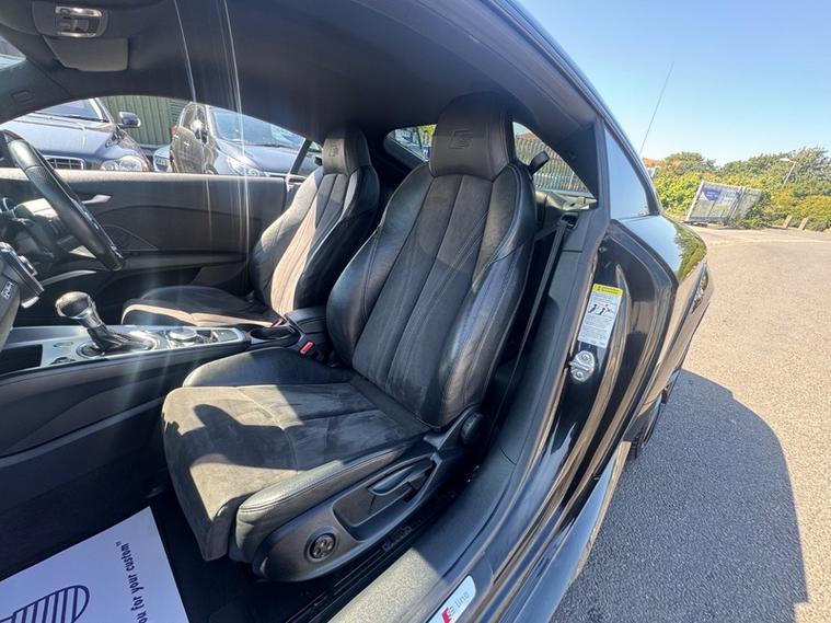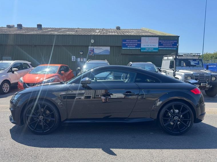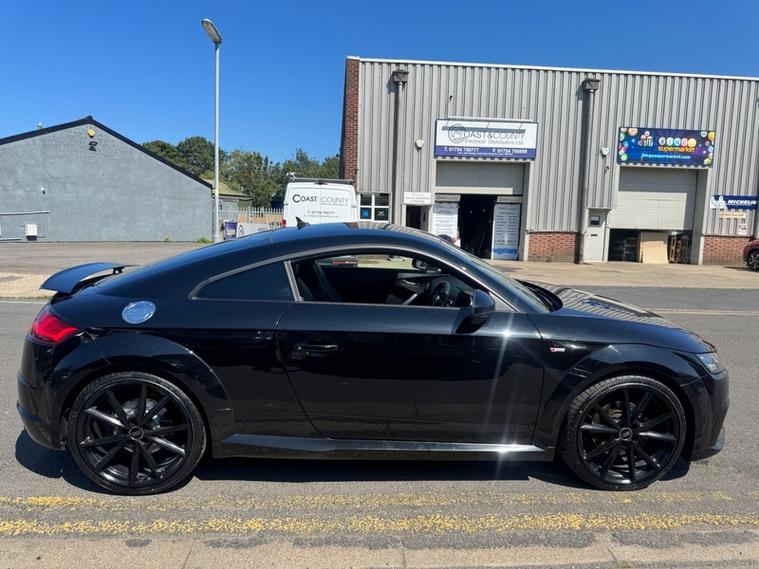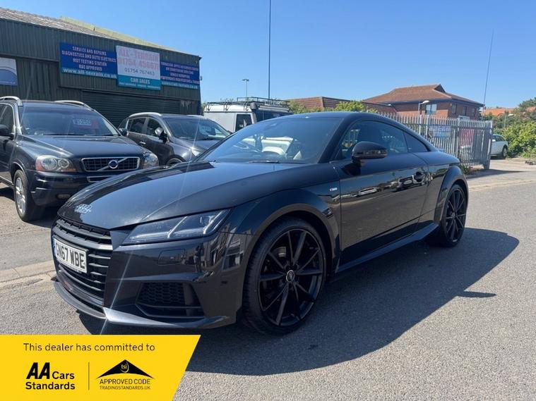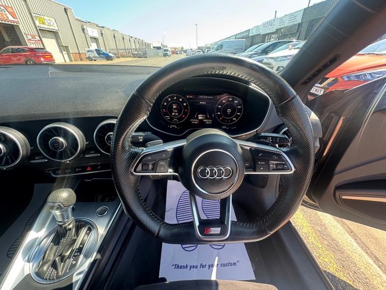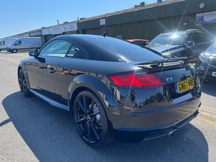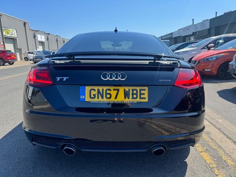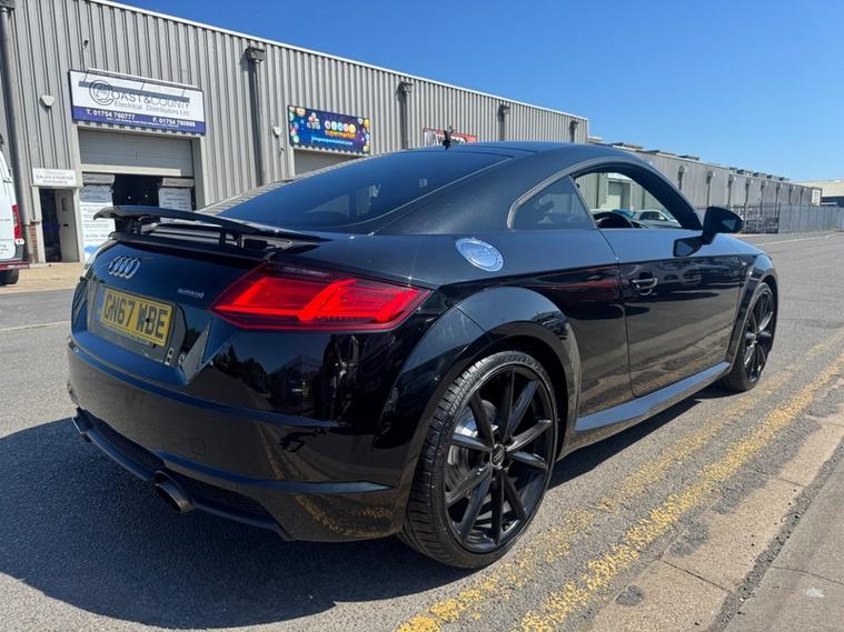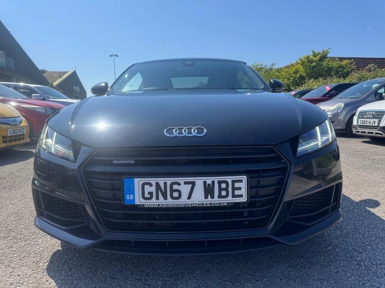 2017 (67) Audi TT 2.0T FSI Quattro Black Edition 2dr S Tronic. REBUILT GEARBOX LAST YEAR AT A COST OF £3600. The cheapest TT Black Edition of this shape in the country (this also being the more desirable 2.0T Petrol & Automatic Transmission with 4WD Quattro). 2 owner car with 2 keys and Full Service History. Runs and Drives faultlessly, a credit to the previous owners as it looks and drives like a car with half the miles. Reliable and proven 2.0 Turbo petrol with Audi Quattro system, very fast 0-60 in 5.7 seconds and can average over 43 MPG combined making it a fun yet practical sports car, as well as this it can seat 4. 4 New Tyres and new rear brakes and has just been serviced. 12 Months Advisory Free MOT and 6 Months Nationwide Warranty with the sale. Stunning interior with Half leather/half Alcantara S Line seats, Bang and Olufsen premium sound, Full leather S Line flat bottom steering wheel, Digital dash with driver modes/music/phone/car settings, Cruise control, Paddle shifters, Retractable spoiler and more. Stunning value.