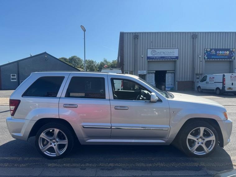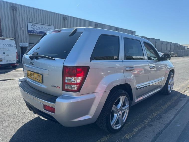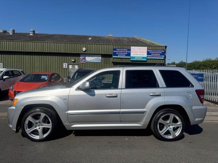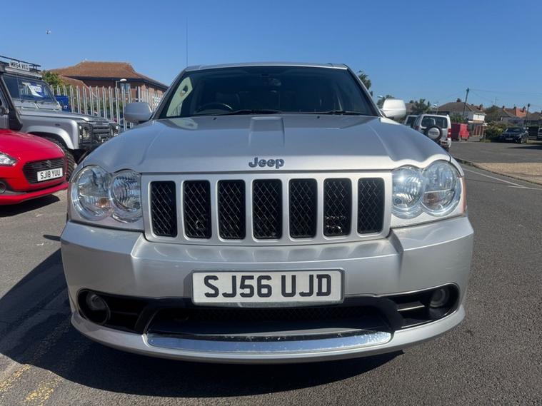 2006 (56) Jeep Grand Cherokee 6.1 V8 SRT-8 5dr Automatic in Silver. Rare SRT-8 with a 6.1 litre V8 Hemi engine producing 420 BHP and a 0-60 time of 5 seconds flat. Only 48, 000 warranted miles! The SRT-8 is a real collectors piece, especially with such low mileage. Stacks of Paperwork including a recent external health check (everything passed). 2 keys, last owner 2017. Lowered BC Racing adjustable suspension giving the SRT-8 a more aggressive stance as well as better handling. Fantastic condition inside and out for its age. Runs and Drives brilliantly, a comfortable cruiser with muscle car performance when required and is a real sleeper on the road. Electric sunroof, Working Air Conditioning, 20 inch wheels, Cruise control, Heated electric leather seats, Pioneer head unit with Navigation and more. 12 Months MOT, Service and 6 Months Warranty with the sale.