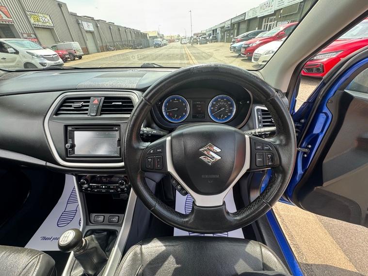 2013 (63) Suzuki SX4-SCROSS 1.6 SZ5 ALLGRIP 5dr in Blue. Rare ALLGRIP model with 4WD capabilities including snow and mud modes. 2 owner vehicle with 2 keys and partial service history. Stunning colour complemented with the black wheels and supporting trims. Reliable 1.6 Suzuki petrol engine which is ULEZ compliant. Runs and Drives brilliantly. The 1.6 petrol also operates with a timing chain meaning no costly belt changes required. SZ5 top specification includes Leather heated seats, Electric sliding panoramic roof, Navigation, Reverse camera, Cruise control, Bluetooth connectivity, 17 inch alloy wheels, Auto lights wipers and more. Good fuel efficiency with it able to achieve over 47 average MPG. 12 Months MOT, Fresh service and 6 Months Nationwide Warranty to come with the sale. Nice reliable, safe, practical and high specification vehicle. £0 Deposit Finance Available.