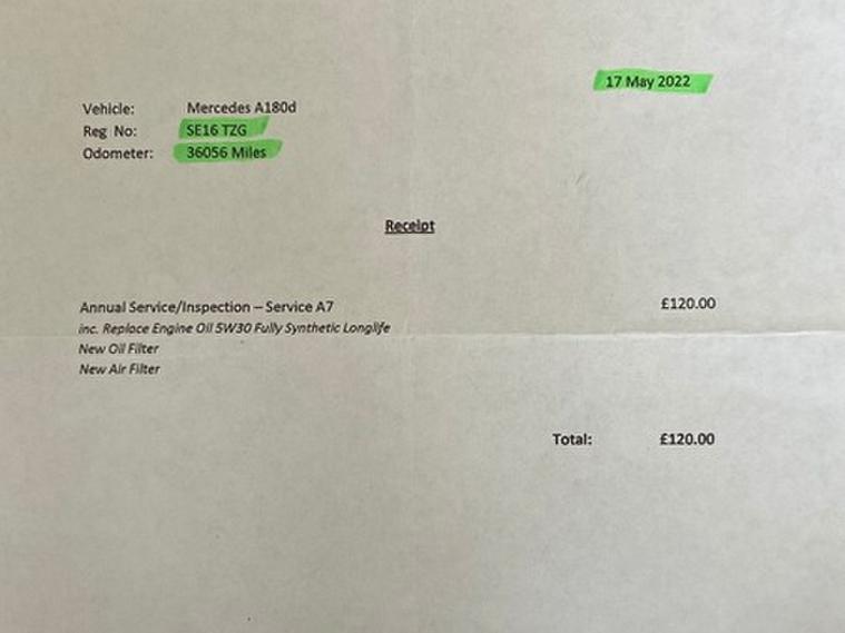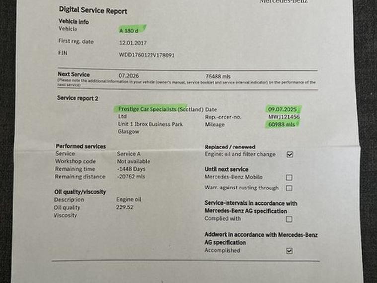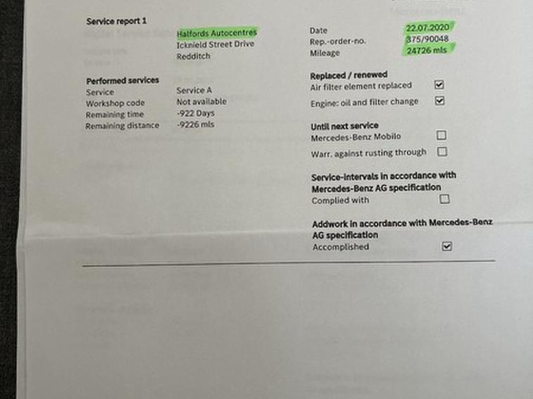 This car comes with 5 seats, Black, 2 owners, 16in Alloy Wheels - 5-Twin-Spoke Design, 7in Tablet-Style Colour Display, ABS - Anti-Lock Braking System, ASR - Acceleration Skid Control, ATTENTION Assist, Active Bonnet - Pedestrian Safety Measure which Detects an Impact and Raises Bonnet by 65mm, Adaptive Brake Assist with Hold Function and Hill Start Assist, Adaptive Brake Lights, Air Conditioning - THERMATIC, Air Vents with Black Surround - Petrol Green Insert and Cruciform Nozzle, Airbag - Drivers Knee, Airbag - Dual-Stage - Front Passenger, Airbags - Dual-Stage - Driver, Airbags - Head for Driver and Front Passenger, Airbags - Windowbags for Driver and Front Passenger, Alarm System with Interior Protection, Audio 20 Radio-CD-MP3 Compatibility, Automatic Child Seat Recognition Sensor, BAS - Brake Assist, Beltline Strips - Chrome, Bluetooth, Brake-Pad Wear Warning Indicator, Bumpers - Body-Coloured, Centre Armrest - Front with Storage, Childproof Locks - Manually Operated for Rear Doors and Electrically Operated for Rear Power Windows, Collision Prevention Assist Plus, Controller on Centre Console with Chrome Surround, Crash Sensor with Emergency Opening Function for Doors, Crash-Responsive Emergency Lighting, Cruise Control with SPEEDTRONIC Variable Speed Limiter, Cup Holder - Twin, Direct Select Gearshift Lever, Door Handles - Body-Coloured, Door Mirrors - Body Coloured, Door Mirrors - Electrically Adjustable and Heated, Door Mirrors - Integrated LED Indicators, Door Sill Panels - Mercedes-Benz Lettering, ESP - Electronic Stability Programme, ESP Cornering Dynamics Assist, Electric Parking Brake, Electronic Key - Chrome Surround, Exhaust System - No Visible Tailpipes, First Aid Kit, Fluid Level Warning Indicator for Fuel - Oil - Coolant and Washer Fluid, Footwell Lights in Front, Glove Compartment - Illuminated, Head Restraints - Manually Adjustable - Front and Rear, Headlight Assist - Automatic Headlight Activation, Headlights - Halogen, Headlights - Integrated Daytime Running Lights, Heated Rear Window with Timer Control, High Level Third Brake Light - LED, ISOFIX and Top-Tether Child Seat Fixing Points in Rear - Two Outer Seats, Immobiliser, Indicators - Lane Change Function, Instrument Cluster with 4 Analogue Dials and Needles Suspended in Six-o-Clock Position, Light Failure Indicator, Load-Securing Rings in Luggage Compartment, Luggage Compartment Cover, Media Interface, Mercedes Me Connect, Outside Temperature Gauge, Power Steering - Speed-Sensitive, Pre-Wiring for Garmin Map Pilot Navigation System, Radiator Grille - Diamond in Black with One Louvre Painted in Vehicle Colour and Chrome Insert, Radio Aerial Roof Spoiler, Rear Seats - Split Folding 1-3 - 2-3, Rear Windscreen Wiper, Remote Central Locking, Reversing Camera with Parking Guidelines - 180 Degree View, Roof Lining - Grey Fabric, SD Memory Card Slot, Seat Belt Reminder - Front and Rear, Seat Comfort Package, Seat Occupancy Sensor - Front Passenger Seat, Seats - Cushion Angle Adjustment for Front, Seats - Front Cushion Length Adjustment, Seats - Front Manually Adjustable, Seats - Height Adjusters, Service Indicator ASSYST, Side Skirts - Body-Coloured, Sidebags for Driver and Front Passenger, Speakers x6, Steering Column - Manually Adjustable for Height and Reach, Steering Wheel - 3-Spoke - Trimmed in Leather with Perforated Leather in Grip Area, Steering Wheel - Gear Shift Paddles, Steering Wheel - Multi-function, Storage Compartment Beneath Load Compartment Floor, Suspension - Comfort, TIREFIT Tyre-Sealant Kit, Tail Lights - Partial LED, Telephone Keypad, Trim - Honeycomb, Trip Computer, Twin Radio Tuner - FM-AM, Tyre Pressure Monitoring System, USB Ports in Centre Console x2, Warning Triangle, Windows - Electric x4, eCall - Emergency Call System,