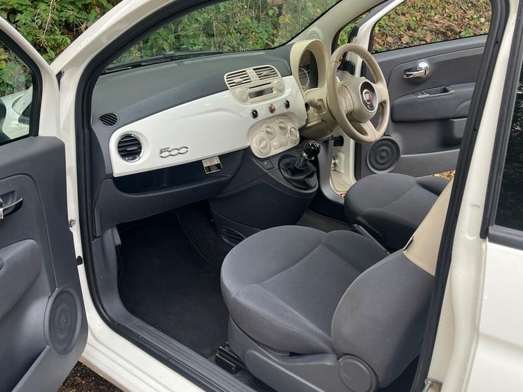 Fiat 500 Pop in white, complete with alloy wheels, electric front windows and remote central locking.
