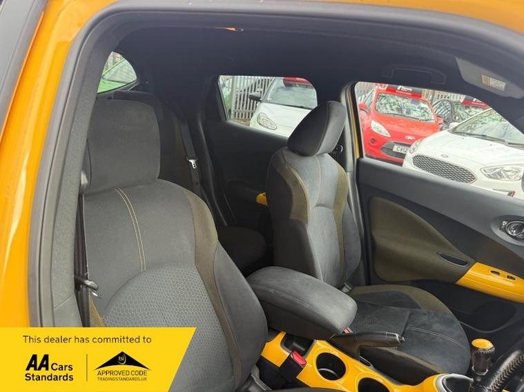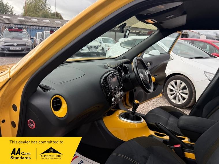 YELOW NISSAN JUKE STUNNING CONDTION FULL SERVICE HISTORY LAST SERVICE AT 72 K MILES+ULEZ COMPLAINT+ONE OWNER FROM NEW+LOW INSURANCE+NEW 12 MONTH MOT POINT OF SALE+SATNAV+REARCAMERA+CD PLAYER+AIRCONDTION+ 3 MONTHS WARRANTY INCLUDED(OPTIONS TO UPGRADE UPTO 24 MONTHS)+12 MONTH AA BREAKDOWN COVER+IDEAL FIRST CAR +LOOKS AND DRIVES LOVELY+CLEAR TO DRIVE IN LONDON, BIRMINGHAM, BRISTOL ULEZ ZONES+ WE NOW OFFER FINANCE WITH A MINIMUM OF 10% CUSTOMER DEPOSIT CONTRIBUTION, NOTE Test drive By appointment only