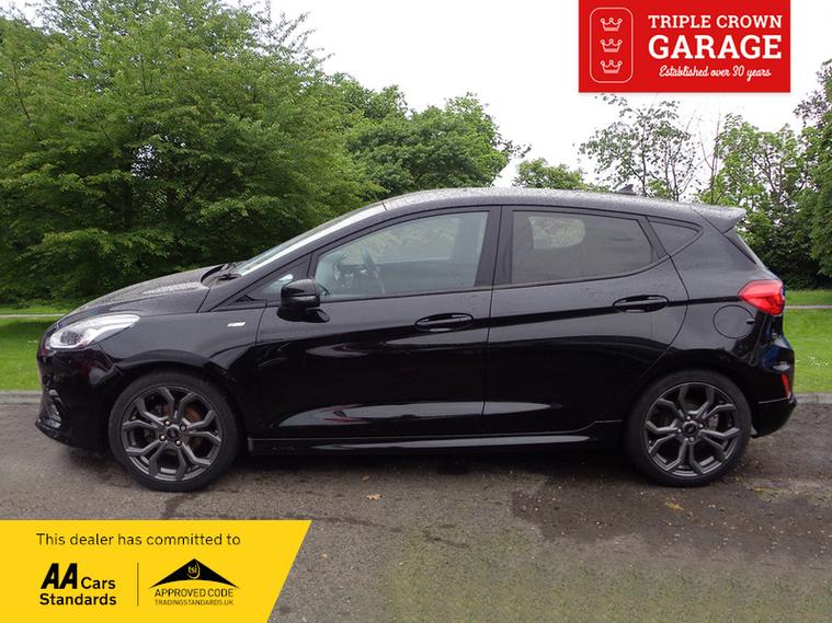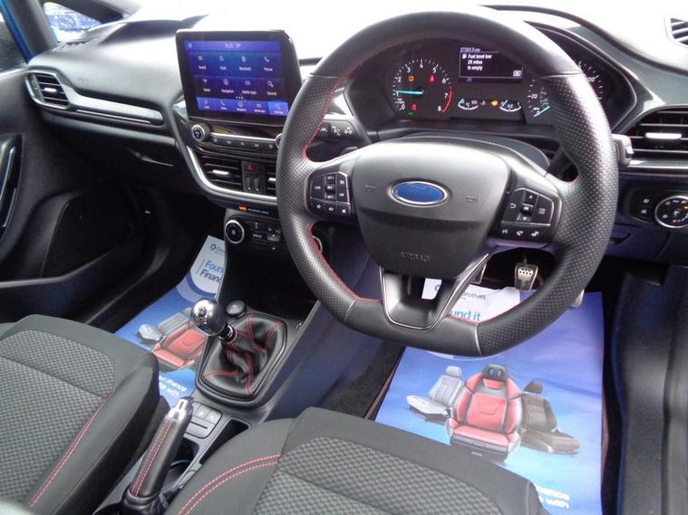 THIS GREAT FIESTA ST LINE COMES WITH WARRANTED LOW MILES AND SERVICE SHEET. THE SPEC INCLUDES, 17 INCH GREY ALLOYS, AIR CON, SAT NAV, PRIVACY GLASS, CENTRAL LOCKING, CENTRE ARMREST, 6.5 INCH SCREEN BLUETOOTH INCLUDING PHONE CONNECTION MUSIC STREAMING, BRAKE ASSIST, HILL START ASSIST, HEATED WINDSCREEN, STOP START SYSTEM AND ELECTRIC WINDOWS FRONT AND REAR, THE CAR WILL HAVE A NEW MOT ON PURCHASE AND A FREE AA BREAKDOWN RECOVERY. NO ADMIN FEES
