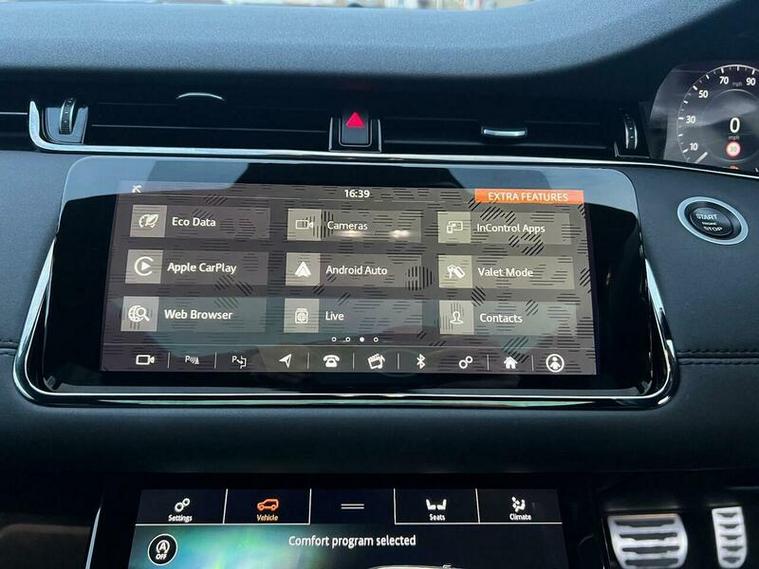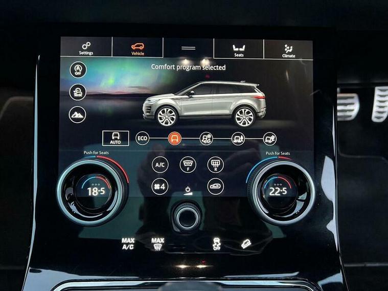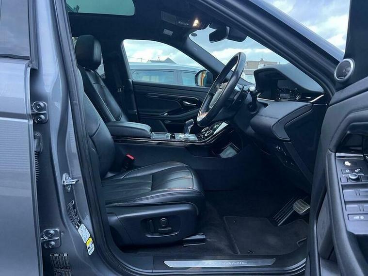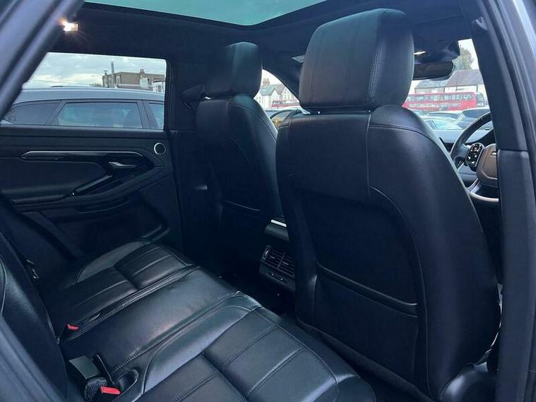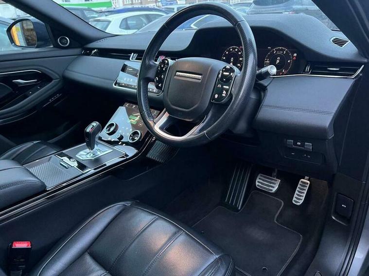 Boasting a full service history, last service on 24/10/25 including new timing chain, front and rear brake pads and a clear vehicle history check, this 2020 Land Rover Range Rover Evoque D150 R-Dynamic SE is presented in excellent condition. This four wheel drive model features a 2.0L diesel engine and meets Euro 6 emission standards, contributing to its low CO2 emissions. It comes with a 6 month warranty and 2 keys for your peace of mind. Notable features include a fixed panoramic roof with a powered blind, a Meridian sound system, Apple CarPlay, Android Auto, rear view camera, park assist, a heated steering wheel, and 14 way electric memory front seats with heated front and rear seats. The vehicle is further enhanced by stylish 20 inch gloss black alloy wheels in a 5 split spoke design.