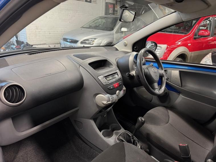 TOYOTA AYGO 1.0 VVT-I I BLUE, 2010 , 5 DOOR, METALLIC ELECTRIC BLUE, 100078 MILE'S, SERVICED, MOT TILL 27/10/2026 . GREAT SPEC POWER STEERING , ELECTRIC WINDOW'S, REMOTE CENTRAL LOCKING, AIR BAG, C.D PLAYER, AUX CONNECTION.. OUTSTANDING CONDITION FOR ITS AGE, , DRIVE'S PERFECT.. LOW TAX £20 A YEAR.. LOVELY LITTLE VEHICLE