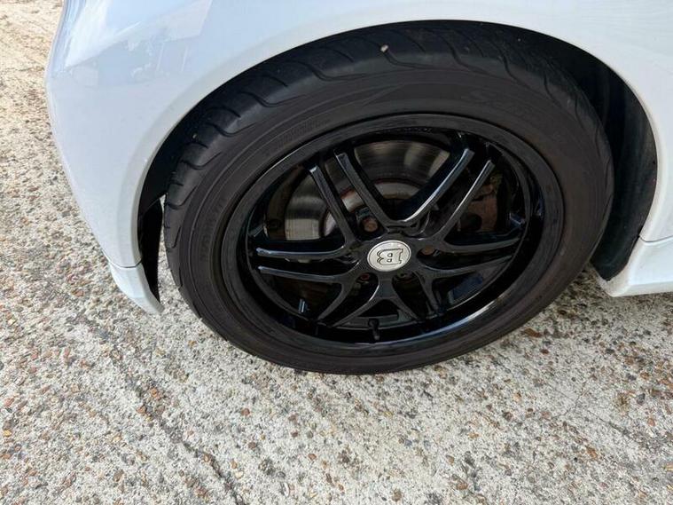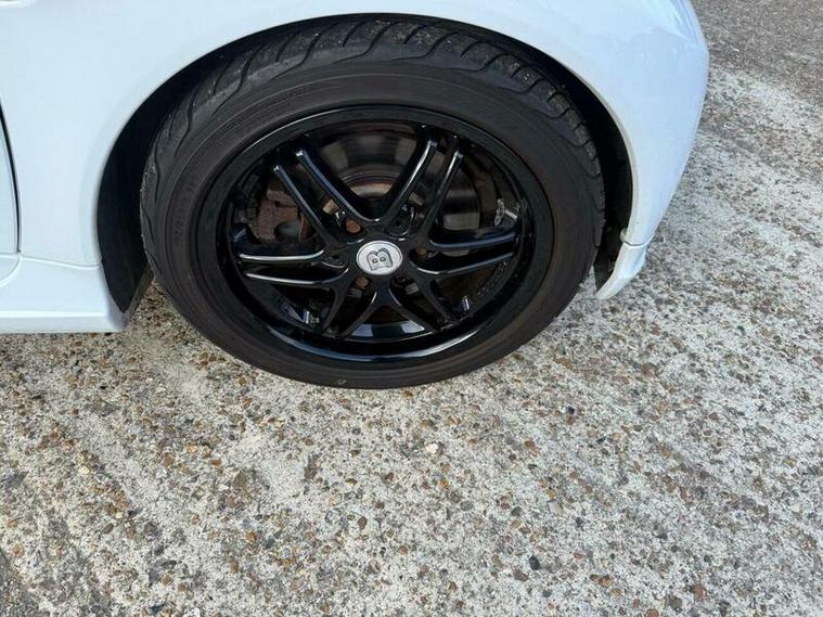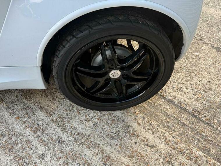 CAND INDEED IT'S AREAL EYE-FULL AS WELL WITH THE EXCELLENT CONDITION GLOSS BLACK WHEELS AND BLACK LEATHER INTERIOR. SET OFF AGAINST THE WHITE OF THE BODY.
