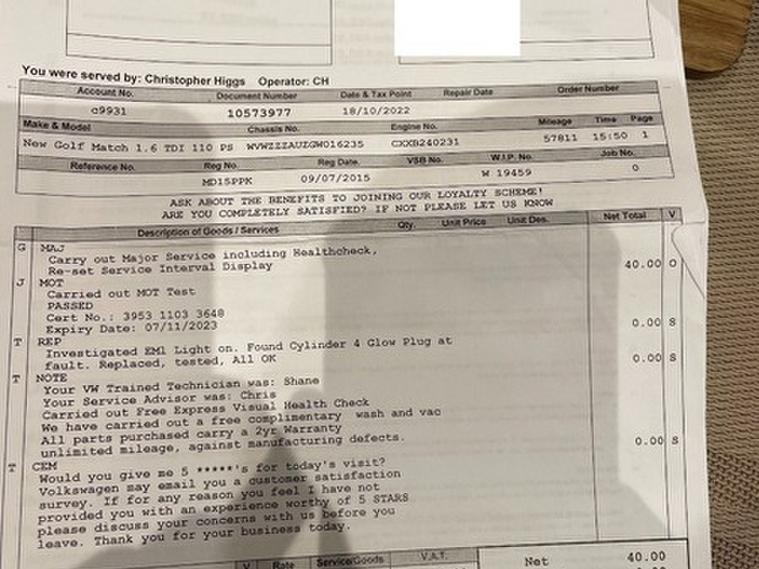 This car comes with 5 seats, Black, 3 owners, 12V Socket, 12V Socket - Luggage Compartment, 16in Alloy Wheels - Dover, ABS - Anti-Lock Braking System, ASR - Anti Slip Regulation, Air Conditioning - Manual, Air Vent Surrounds - Chrome Effect, Airbags - Curtain Front, Airbags - Curtain Rear, Airbags - Driver, Airbags - Drivers Knee, Airbags - Front Passenger, Airbags - Front Passenger with Deactivation Switch, Airbags - Front Seat Side Impact, Alarm with Interior Protection, Anti-Theft Wheel Bolts, Armrest - Front Centre with Ventilation Nozzles x2, Automatic Dimming Rear View Mirror, Automatic Post-Collision Braking System, Aux-In Socket, Black Front Air Intake and Radiator Grille with Chrome Trimmed Inserts, Bluetooth Audio Connection, Bluetooth Telephone Preparation, Body Coloured Bumpers, Body Coloured Door Handles, Body-Coloured Door Mirrors with Integrated Indicators, Brake Pad Wear Indicator, Car Information Display, Carpet - Black, Central Locking - Remote with 2 Remote Keys, Child Locks in Rear Doors, Chrome-Plated Light Switch Surround, Colour Touch Screen - 6.5in, Composition Media System, Convenience Pack, Cruise Control - Adaptive, Cup Holders - Front x2, Cup Holders - Rear Armrest x2, DAB - Digital Radio Reception, Dashboard - Brushed Dark Silver Decorative Inserts, Dashboard - Titan Black, Daytime Running Lights, Differential Lock - Electronic, Door Mirrors - Electrically Adjustable-Heated and Folding, Door Mirrors - Puddle Lights, Door Mirrors - Reverse Activated Kerb View Adjustment on Passengers, Door Panels - Brushed Dark Silver Decorative Inserts, Driver Alert System, Driver Profile Choices, Dust and Pollen Filter, ESP - Electronic Stability Programme, Electric Windows - Front and Rear, Electronic Engine Immobiliser, Electronic Parking Brake with Auto Hold Function, First-Aid Kit and Warning Triangle - Holder Only, Front Assist including City Emergency Braking, Front Fog Lights with Cornering Lights, Front Seat Back Storage Pockets, Gear Shift Indicator, Glovebox - Illuminated - Cooled - Lockable, Grab Handles - Front x2 Rear x2 with Coat Hooks, HBA - Hydraulic Brake Assist, Head Restraints - Front Whiplash Optimised, Headlight Washer System, Headlights - Coming-Leaving Home Function, Headlights - Dusk Sensor - Automatic Driving Lights, Headlights - Halogen Clear - Range Adjustable, Heated Front Seats, Heated Rear Windscreen, Heated Windscreen Washer Jets, Height and Reach Adjustable Steering Column, Height-Adjustable Front Three-Point Seat Belts with Tensioners, High Level 3rd Brake Light - LED, ISOFIX Child Seat Preparation for 2 Rear Seats, Instrument Lighting - White Adjustable Panel Illumination, Interior Lighting Delay, Keys - Folding x 2, LED Rear Number Plate Lights, Leather Trimmed Gear Knob, Leather Trimmed Three-Spoke Steering Wheel and Gear Knob, Lights on Warning Buzzer, Load Lashing Points x4 in Luggage Compartment, Load-Through Provision, Load-through Provision Converts to Table Function, Low Washer Fluid Warning Light, Luggage Compartment - Hooks, Luggage Compartment Cover, Luggage Compartment Light, Luggage Compartment Storage Area on Right, MDI - Multi Device Interface with USB - iPod Connection Cables, Mirror Pack, Misfuel Prevention Device, Multifunction Computer - 3.5in Display, Optical Parking Display via Vehicles Audio System, Parking Sensors - Front and Rear, Parking Sensors - Rear, Power Assisted Steering - Speed Sensitive, Pre-Crash Preventive Occupant Protection, Radar Sensor Controlled Distance Monitoring System, Radio Aerial Integrated into Rear Windscreen, Rain Sensor, Reading Lights - Front x2 and Rear x2, Rear Centre Armrest, Rear Diffuser - Black, Reflectors in Doors, SD Card Reader, SMS Functionality - Read - Compose and Send SMS Messages Using Touch Screen Display - Android Compatible Smartphones Only, Seats - Front Comfort, Seats - Front Lumbar Support, Seats - Height Adjustment - Front, Service Interval Display, Simultaneous Pairing of 2 Compatible Mobile Devices, Single CD Player, Sound Output - 4x20 Watt, Spare Wheel - Space Saver Steel, Speakers x8, Speed Limiter, Split Folding Rear Backrests 60-40, Spoiler - Tailgate, Steering Wheel - Audio Controls, Storage - Cover for Area in Roof Console, Storage Compartment in Centre Console Covered, Storage Compartment in Front Doors, Storage Compartment in Rear Doors, Storage Compartment in Roof Console, Sun Visors - Vanity Mirrors and Illuminated, Temperature Display - External, Think Blue - Trainer - Driver Tips - Journey Analysis, Three Rear Head Restraints, Tinted Glass - Heat Insulating Green, Title and Cover Art Display, Tyre Pressure Indicator, Under Seat Drawers - Front Passenger, Variable Boot Floor, Warning Buzzer and Light for Front Seat Belts if Unfastened, Windscreen Wipers with Intermittent Wipe and 4 Position Delay, Winter Pack, XDS Electronic Differential Lock,