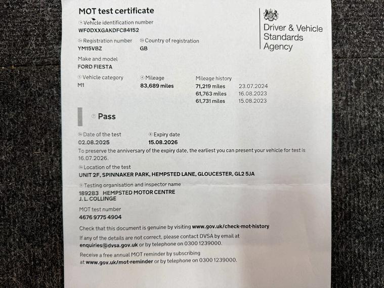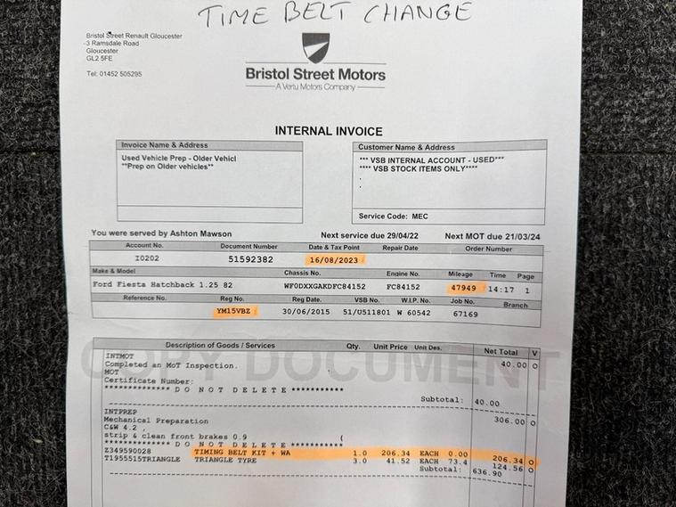 Discover this 2015 Ford Fiesta Zetec, a popular choice for many drivers. *CAMBELT REPLACED 16/08/2023 at 47949 MILES* This model is equipped with a reliable 1.25 litre petrol engine, offering a balanced performance for everyday journeys. Inside, you'll find manual air conditioning to keep you comfortable in all seasons, and the Deflation Detection System provides an extra layer of safety by alerting you to tyre pressure issues., , The Ford Fiesta Zetec is known for its practicality and affordability, and this particular example benefits from being in a low insurance group. This means that running costs are kept down, making it an attractive option for new drivers or those looking for an economical vehicle. Its well established reputation for reliability and ease of driving further enhances its appeal., 3 months warranty, Next MOT due 15/08/2026, Last serviced on 24/10/2025 at 85, 599 miles, Part service history, Grey Cloth interior, 5 seats, Grey, 3 owners, Upgrades - Lithos Cloth - Charcoal Black, Standard Features - 12V Power Socket - Front, 15in Alloy Wheels - 5x2 Spoke, ABS - Anti-lock Braking System, Aesthetic Lighting Package, Air Conditioning - Manual, Airbags - Curtain, Airbags - Driver Side Knee, Airbags - Front Passenger, Airbags - Head and Thorax, Airbags - Passenger Deactivation, Body Colour Exterior Mirrors, Brake Warning Lights - Automatic Flashing of Brake Lights Under Heavy Braking, Bumpers - Front and Rear - Body Colour, Centre Console - with Trinket Tray - Two Cup Holders, Chrome Belt Line Finisher, Courtesy Light - Overhead with Theatre-Style Dimming, Courtesy Lights with Map Reading Lights, DDS - Deflation Detection System, Daytime Running Lamps, Door Handles - Body Colour, Door Mirrors - Electrically Operated and Heated, Drivers Airbag, EBA - Emergency Brake Assist, EBD - Electronic Brakeforce Distribution, ECOmode, EPAS - Electric Power Assisted Steering, ESP - Electronic Stability Programme, Electric Windows - Front with One Touch Lowering Drivers, Emergency Assistance, Emergency Brake Warning - Automatic Hazard Warning Lights, Engine Immobiliser, Flow Through Centre Console, Ford AM-FM CD Audio System, Ford Easy Fuel Capless Refuelling System with Misfuel Inhibitor, Ford SYNC, Front Fog Lights - Chrome Bezel Rings, Front Lower Grille Insert and Surround - Black, Front Seatback Map Pockets - Driver and Passenger, Front Upper Grille - Chrome Finish Surround, Front Upper Grille Insert - Chrome bars, Gear Knob - Leather, Gearshift Indicator Light, Gearshift Knob - Leather-Trimmed with Chrome Finish Bezel, Glovebox - Illuminated, Head Restraints - 2-way Adjustment, Head Restraints - Rear 2-Way Adjustment, Headlights - Courtesy Delay, Headlights - Follow Me Home, Headlights - Halogen Projector with Silver Bezel, Headliner - Woven, Heated Front Windscreen, High-Mounted Rear Brake Light, Hill Start Assist, IPS - Intelligent Protection System, Interior Door Lever - Chrome Finish, LED Ambient Courtesy Lighting, Leather-Trimmed Handbrake, Loadspace Compartment Light, Loadspace Floor Carpet, Locking Wheel Nuts, MyKey, Pollen Filter, Rake and Reach Steering Adjustable, Rear Courtesy Lights, Rear Spoiler - Body Colour, Remote Central Locking, Removable Package Tray, Seats - 60-40 Split Folding Back and Fixed Cushion, Seats - Drivers 4-Way Adjustment, Seats - Front Comfort Style, Seats - ISOFIX Mounting Brackets for Child Seats, Speakers - x6, Steering Wheel - 3-Spoke - Leather Trimmed with Bezel, Steering Wheel - Multifunction, Stowage Pockets - Driver and Front Passenger Seatbacks, Tailgate Handle - Body Colour with Chrome Finisher, Tinted Glass, Trip Computer, Tyre Inflator Kit, USB and AUX Connection for External Music Devices, Voice Control - Audio, AS WE ARE AN AA CARS DEALER THIS VEHICLE COMES WITH 12 MONTHS AA BREAKDOWN COVER.