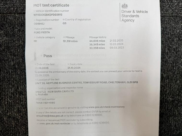 This 2015 Ford Fiesta Zetec presents a remarkable opportunity with its exceptionally low mileage of just 51, 386 miles for a vehicle of its age. Powered by an efficient 1.25 litre petrol engine and meeting Euro 6 emissions standards, this Fiesta Zetec is a practical choice for everyday driving. It comes equipped with convenient features such as manual air conditioning to keep you comfortable in all weather and Bluetooth hands free phone connectivity, allowing you to stay connected safely on the go., , The Ford Fiesta Zetec is renowned for its reliability and enjoyable driving experience, and this particular model stands out further due to its low insurance group rating, suggesting lower running costs compared to many other vehicles. The combination of its well maintained provenance, desirable Zetec trim, and practical features makes this 2015 Fiesta a compelling option for those seeking a dependable and economical car., 3 months warranty, Next MOT due 21/10/2026, Last serviced on 22/10/2025 at 51, 391 miles, Part service history, Grey Cloth interior, 5 seats, Metallic Blue, 4 owners, 12V Power Socket - Front, 15in Alloy Wheels - 5x2 Spoke, ABS - Anti-lock Braking System, AUX Connection, Aesthetic Lighting Package, Air Conditioning - Manual, Airbags - Curtain, Airbags - Driver Side Knee, Airbags - Front Passenger, Airbags - Head and Thorax, Airbags - Passenger Deactivation, Bluetooth Hands-free Phone, Body Colour Exterior Mirrors, Brake Warning Lights - Automatic Flashing of Brake Lights Under Heavy Braking, Bumpers - Front and Rear - Body Colour, Centre Console - with Trinket Tray - Two Cup Holders, Chrome Belt Line Finisher, Courtesy Light - Overhead with Theatre-Style Dimming, Courtesy Lights with Map Reading Lights, DDS - Deflation Detection System, Daytime Running Lamps, Door Handles - Body Colour, Door Mirrors - Electrically Operated and Heated, Drivers Airbag, EBA - Emergency Brake Assist, EBD - Electronic Brakeforce Distribution, ECOmode, EPAS - Electric Power Assisted Steering, ESP - Electronic Stability Programme, Electric Windows - Front with One Touch Lowering Drivers, Emergency Assistance, Emergency Brake Warning - Automatic Hazard Warning Lights, Engine Immobiliser, Flow Through Centre Console, Ford AM-FM CD Audio System, Ford Easy Fuel Capless Refuelling System with Misfuel Inhibitor, Ford SYNC, Front Fog Lights - Chrome Bezel Rings, Front Lower Grille Insert and Surround - Black, Front Seatback Map Pockets - Driver and Passenger, Front Upper Grille - Chrome Finish Surround, Front Upper Grille Insert - Chrome bars, Gear Knob - Leather, Gearshift Indicator Light, Gearshift Knob - Leather-Trimmed with Chrome Finish Bezel, Glovebox - Illuminated, Head Restraints - 2-way Adjustment, Head Restraints - Rear 2-Way Adjustment, Headlights - Follow Me Home, Headlights - Halogen Projector with Silver Bezel, Headliner - Woven, Heated Front Windscreen, High-Mounted Rear Brake Light, Hill Start Assist, IPS - Intelligent Protection System, Interior Door Lever - Chrome Finish, LED Ambient Courtesy Lighting, Leather-Trimmed Handbrake, Loadspace Compartment Light, Loadspace Floor Carpet, Locking Wheel Nuts, MyKey, Pollen Filter, Rake and Reach Steering Adjustable, Rear Courtesy Lights, Rear Spoiler - Body Colour, Remote Central Locking, Removable Package Tray, Seats - 60-40 Split Folding Back and Fixed Cushion, Seats - Drivers 4-Way Adjustment, Seats - Front Comfort Style, Seats - ISOFIX Mounting Brackets for Child Seats, Speakers - x6, Steering Wheel - 3-Spoke - Leather Trimmed with Bezel, Steering Wheel - Multifunction, Stowage Pockets - Driver and Front Passenger Seatbacks, Tailgate Handle - Body Colour with Chrome Finisher, Tinted Glass, Traction Control - TC, Trip Computer, Tyre Inflator Kit, Tyre Pressure Monitoring System, USB Connection, Voice Control - Audio, AS WE ARE AN AA CARS DEALER THIS VEHICLE COMES WITH 12 MONTHS AA BREAKDOWN COVER.
