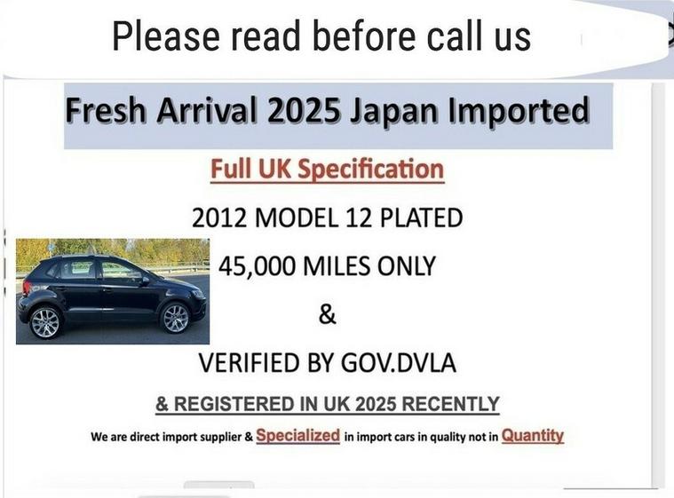 FOR TEST DRIVE Need Original Photo ID ( Driving License/Passport, to be kept in office for duration ) TOP RATED GOOGLE BUSINESS REVIEWS // Uk CAR HEROES // 01215402339 / 01215402339 // Base in Maypole on main Warstock road next to Lidil // All cars come With 12 Months Breakdown cover & 03 Month Minimum Warranty // Extendable Warranty Available ( 06 Months, 12 Months & 24 Months ) // Delivery & Finance Option also Available // ULEZ COMFORT NO CHARGES // STUNNING EXAMPLE // ULEZ COMFORT EURO 6 // 2025 FRESH JAPAN IMPORT // 2012 PLATE VOLKSWAGEN CROSS POLO DUNE X SE DSG 1.2 PETROL AUTOMATIC 5 DOOR HATCHBACK , LOW 26000 MILES ONLY , ONLY ONE COMPANY OWNER IN UK , ABS, Alloy Wheels, Air Condition , Full Climate Control , Electric Windows, Sat Nav , Touch Screen , Usb , Bluetooth & Much More , HPI CLEAR .